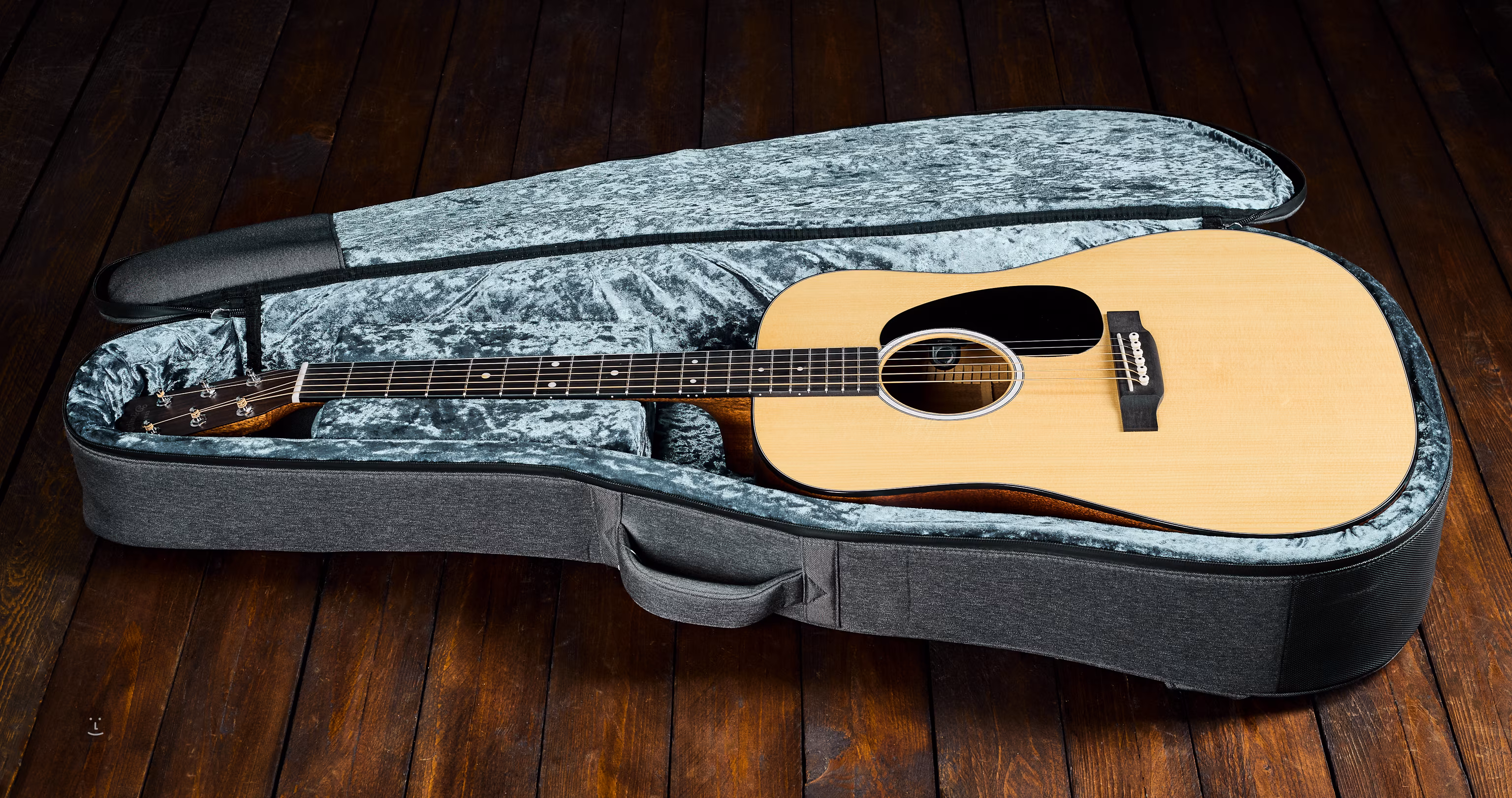 Masívna gitara Martin vyrobená v Mexiku (súčasť série Road) v roku 2021. Gitara bola opravená po prasknutí v spodnej časti.