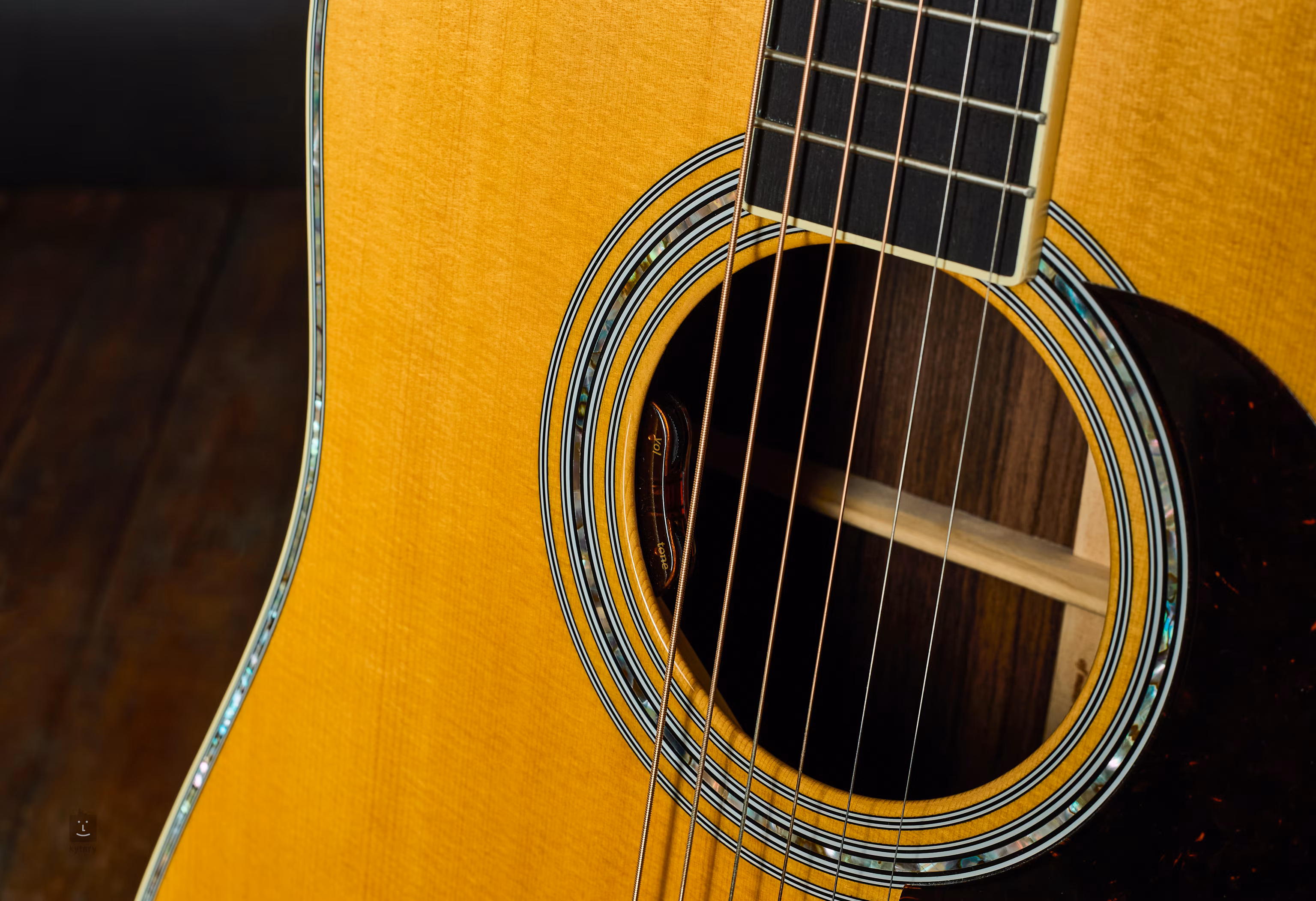Luxusní, bohatě zdobený Martin D41 z roku 2021. Téměř nový nástroj.