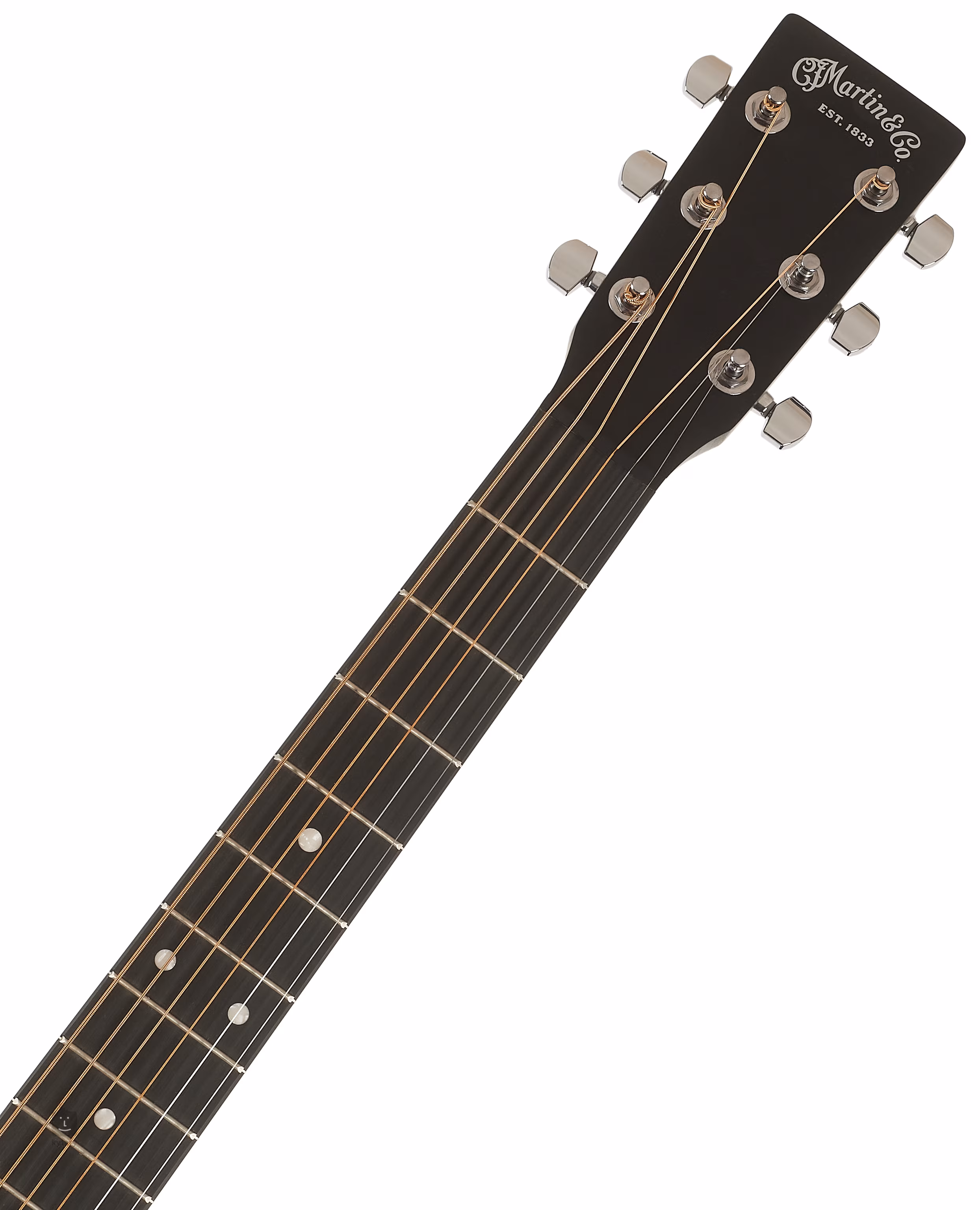 Martin D-X1 Black je akustická gitara typu dreadnought z cenovo dostupnejšej série X, vyrábaná v Mexiku. Telo gitary je vyrobené z moderného materiálu HPL (High Pressure Laminate). Laminovaný krk (prírodný brezový laminát) je prilepený k kompozitnému hmatníku Richlite s dvadsiatimi pražcami. Tento ekologický materiál, vizuálne podobný ebenu, sa vyznačuje vynikajúcimi akustickými vlastnosťami, odolnosťou a stabilitou. Kompenzovaný sedlo z kompozitného materiálu TUSQ umiestnené na Richlite mostíku spolu s umelým kameňom (Corian) poskytuje strunám vynikajúcu rezonanciu a sustain. Strohý dizajn oživuje jednoduchá rozeta s rybinovým vzorom. Gitara sa dodáva v kvalitnom puzdre (Soft Shell), takže je ihneď pripravená na naloženie do kufra vášho auta alebo dodávky na dlhé alebo krátke cesty za vašimi hudobnými snami. Americká spoločnosť Martin, založená v roku 1833, je zaslúžene jednou z najväčších a najrešpektovanejších značiek v oblasti strunových nástrojov. Po desaťročia je jedným z popredných inovátorov v oblasti dizajnových riešení a technologických procesov vo výrobe gitár. Bolo by však veľkou chybou používať len minulý čas; nástroje s logom Martin sú aj naďalej zárukou najvyššej kvality remeselného spracovania a zvuku. Okrem toho sa v ich súčasných produktoch používajú ekologické komponenty z obnoviteľných zdrojov a kompozitné materiály.
