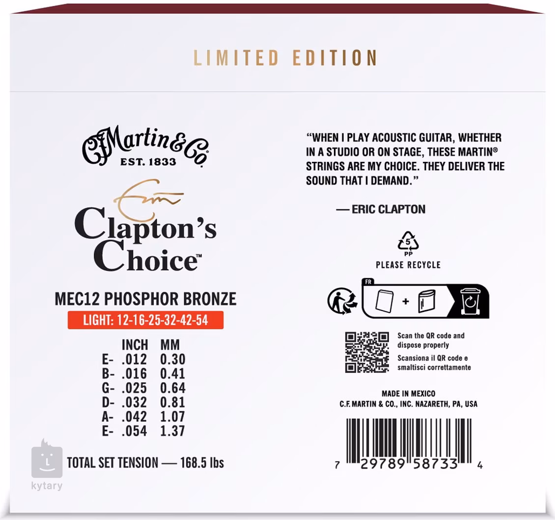 Struny pre akustickú gitaru Clapton’s Choice značky Martin sú už vyše 20 rokov obľúbenou voľbou slávneho blues-rockového gitaristu Erica Claptona. Na oslavu tejto dlhoročnej spolupráce prináša spoločnosť Martin špeciálnu limitovanú edíciu, ktorá vám dáva šancu vyhrať jedinečnú gitaru Martin 000-EC 30th Anniversary, inšpirovanú modelom, ktorý Clapton použil na svojom vystúpení v relácii MTV Unplugged z roku 1992.