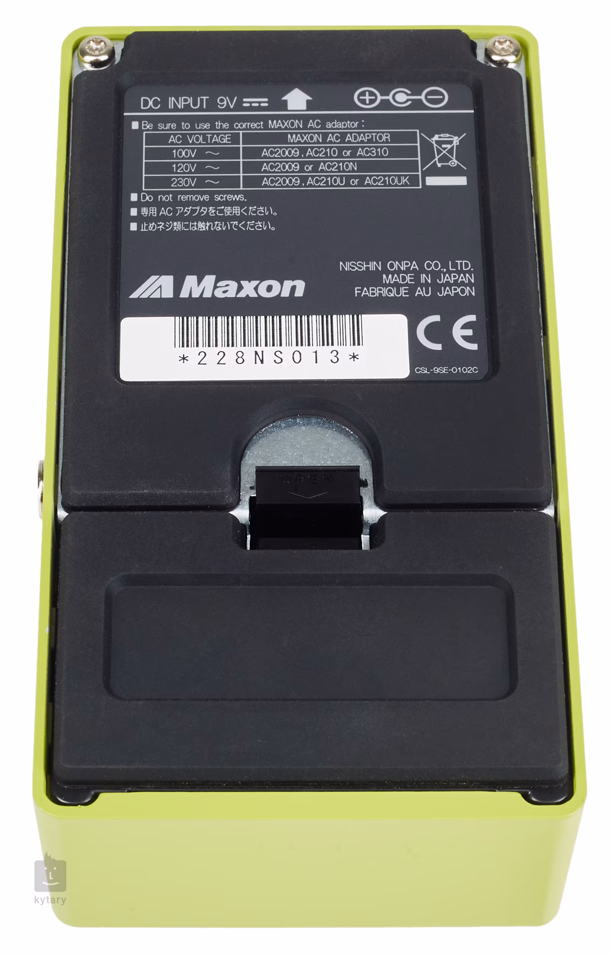 Maxon SD-9 SONIC DISTORTION je zapojený ako true bypass. Na napájanie je potrebná 9V batéria alebo 9/10V adaptér.