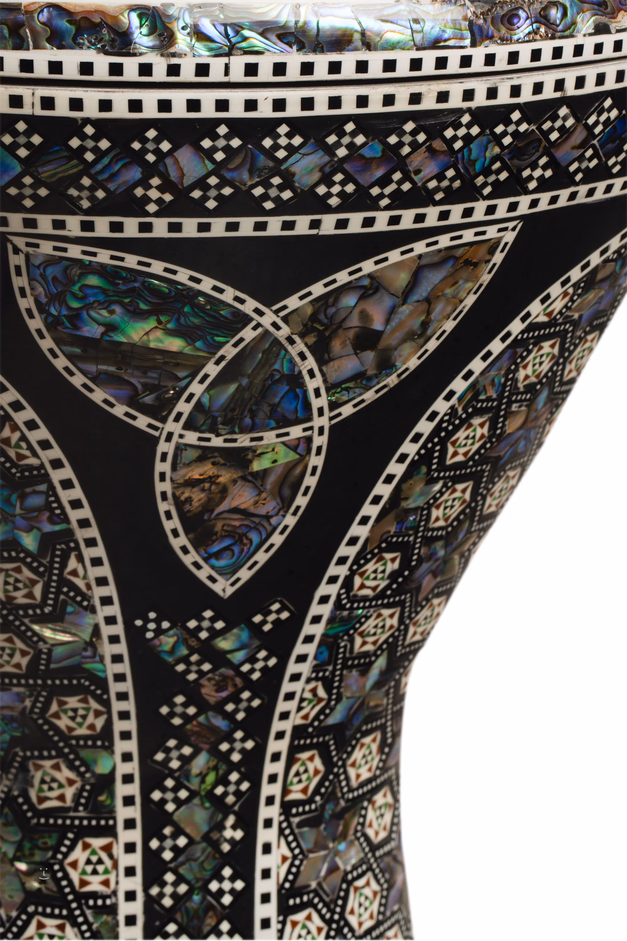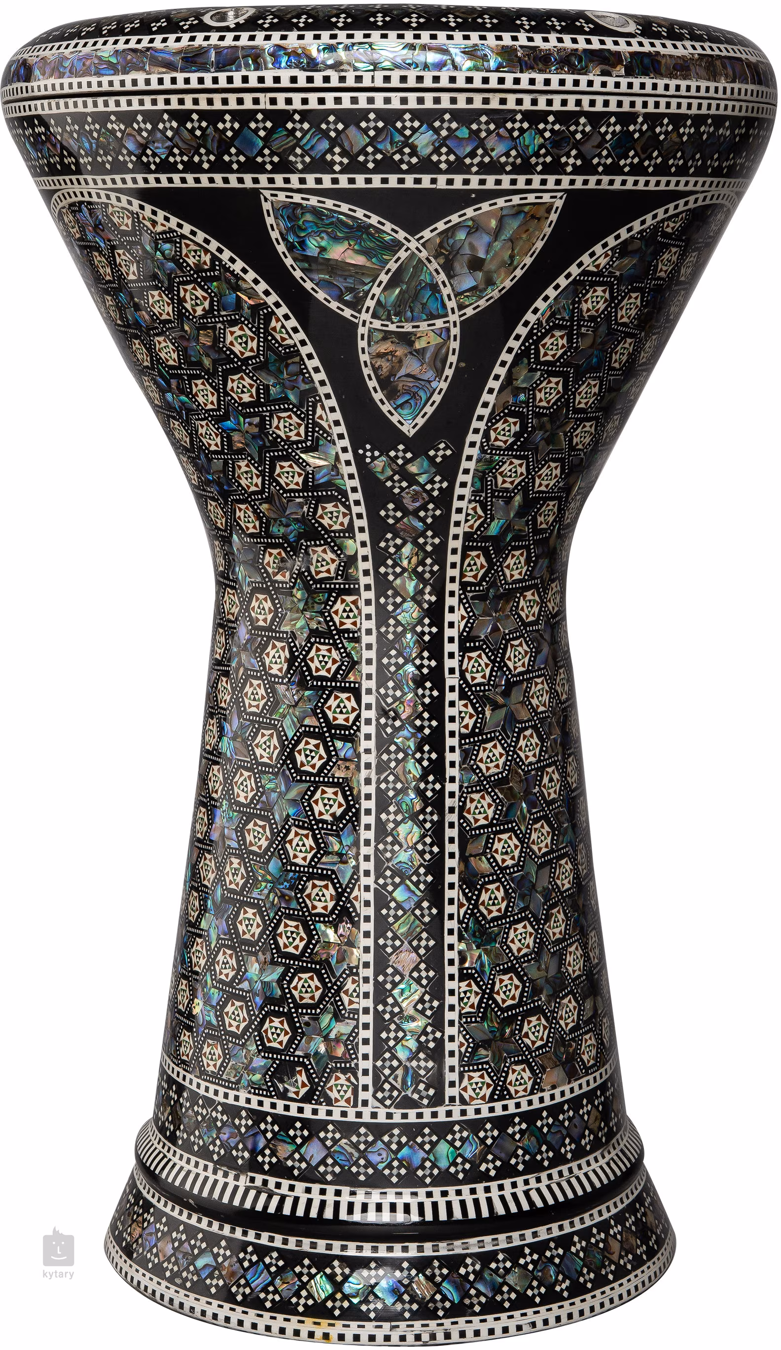 Povrch je zdobený autentickou mozaikou s intarziami z perlete, čo nástroju dodáva luxusný a jedinečný vzhľad. Každý kus je originálny a zároveň odkazuje na bohatú kultúrnu históriu perkusie Blízkeho východu. Ergonomický tvar zaisťuje pohodlné uchopenie a komfortnú hru aj počas dlhších vystúpení.