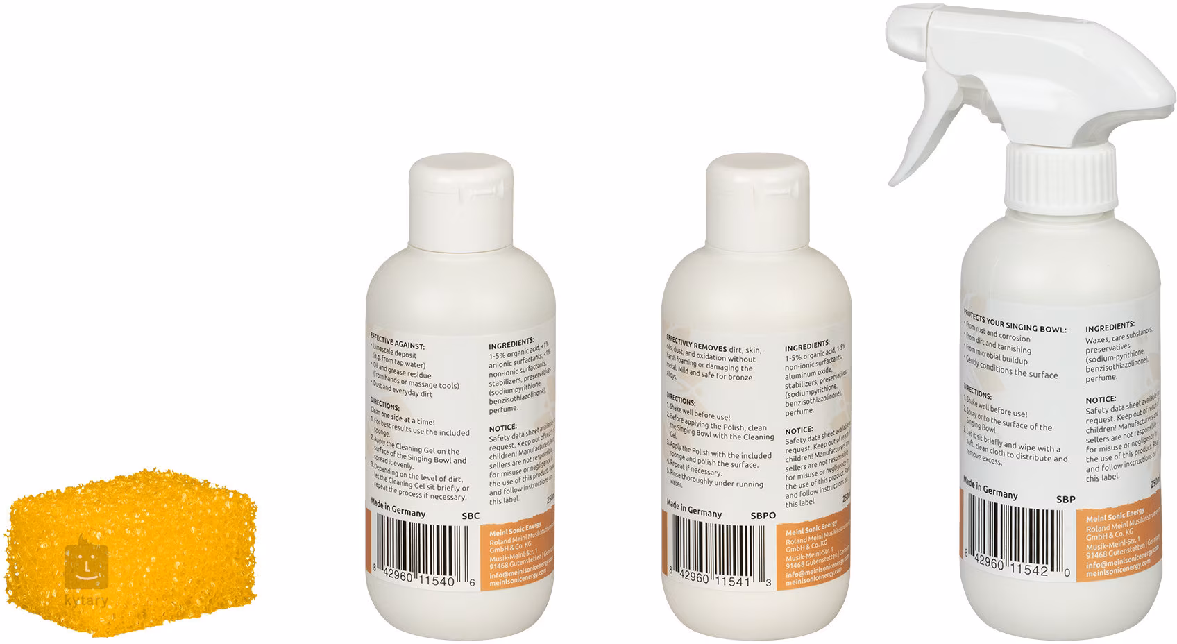 SadaMeinl Sonic Energy Singing Bowl Care & Protectant Set je kompletná sada na čistenie a ochranu tibetských spievajúcich misiek, vyvinutá špeciálne pre šetrnú starostlivosť o tradičné bronzové zliatiny. Tieto šetrné, vegánske a bezpríznakové čistiace prostriedky pomáhajú zachovať prirodzenú krásu nástroja a jeho plnú zvukovú rezonanciu.