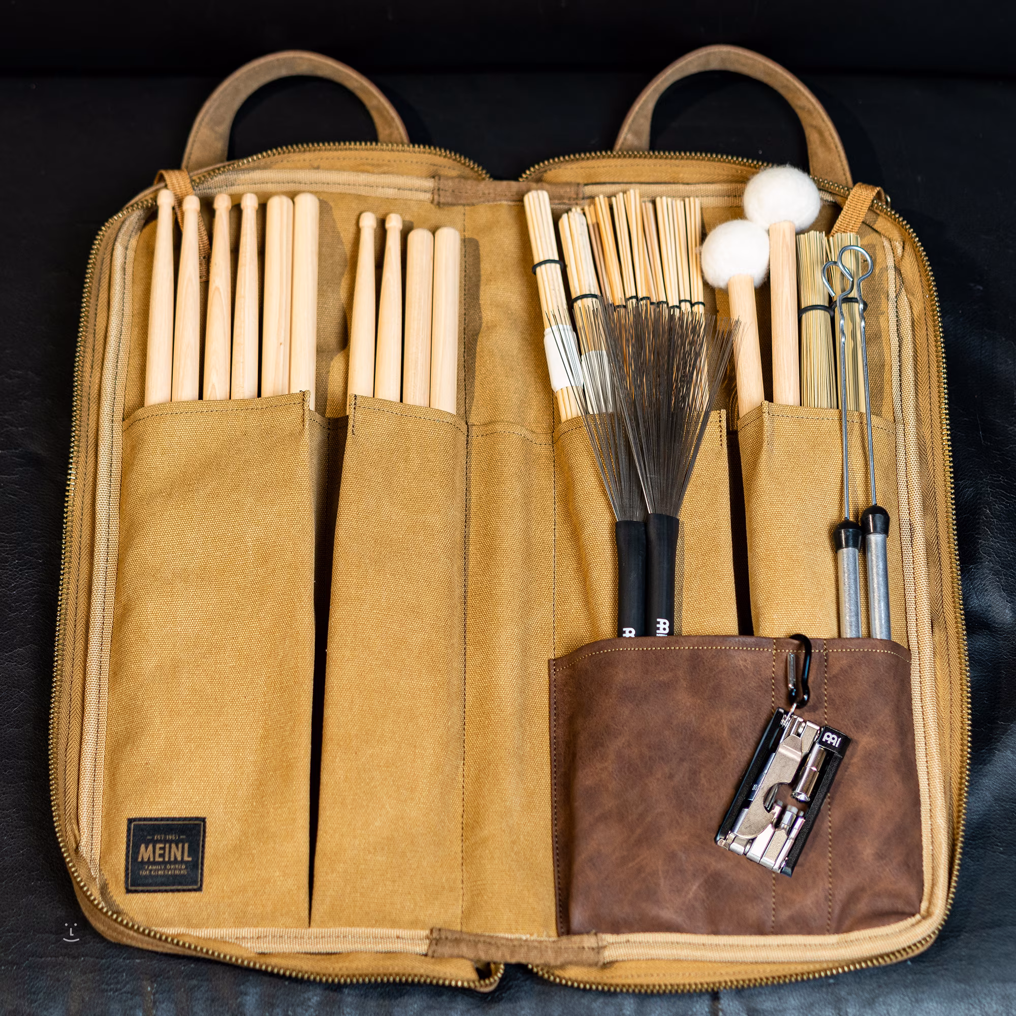 Obal na paličky Meinl MWS z kolekcie Waxed Canvas spája elegantný dizajn s maximálnou praktickosťou, vďaka čomu je ideálnym spoločníkom pre bubeníkov na cestách. Je vyrobený z odolného, 24-uncového bavlneného plátna s voskovanou povrchovou úpravou a ponúka vysokú odolnosť proti oderu a vode, vďaka čomu vydrží roky používania a zároveň si zachováva štýlový vzhľad, ktorý časom získava na charaktere.