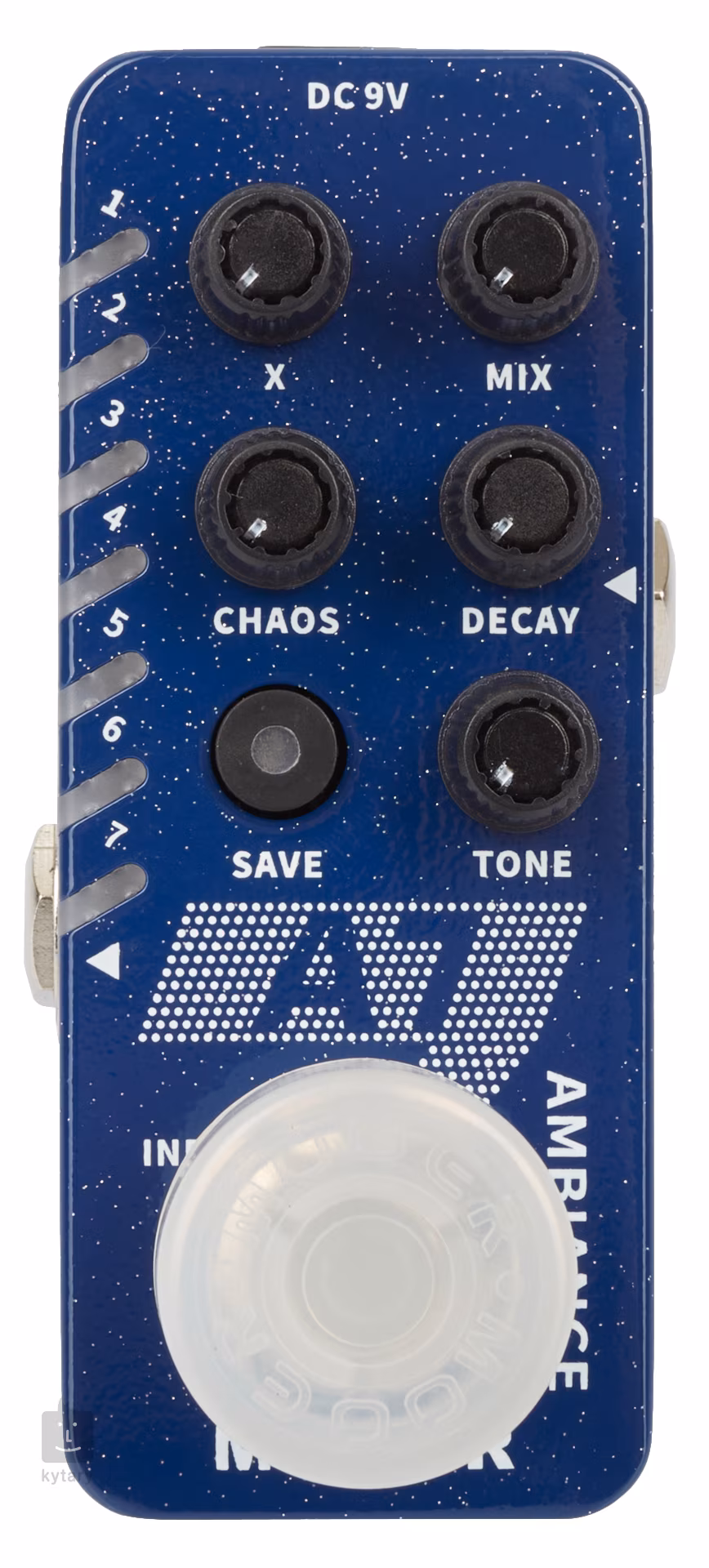 A7 Ambiance je kompaktný gitarový reverbový efekt z novej série Micro čínskej značky Mooer. V malom tele ukrýva sedem typov reverbových efektov - konkrétne Plate, Hall, Warp, Shake, Crush, Shimmer a Dream, ktoré ponúkajú všetko od prirodzených akustických ozvien až po zvuky reverbových efektov s výraznou moduláciou (oktávový efekt, lo-fi efekt).