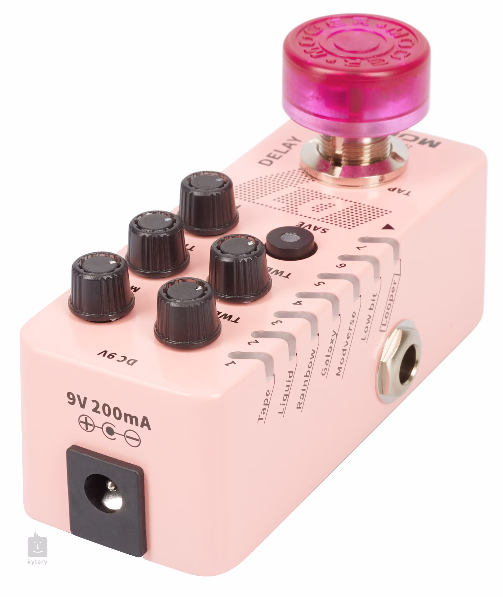 D7 Delay je kompaktný gitarový delay efekt s integrovaným looperom z novej série Micro čínskej značky Mooer. V malom tele sa ukrýva šesť typov delay efektov - konkrétne Tape, Liquid, Rainbow, Galaxy, Mod-reverse a Low-Bit, ktoré ponúkajú všetko od páskových zvukov, reverzných delayov až po stutter a modulačné efekty. Nahrané slučky vstavaného looperu s dĺžkou záznamu 150 sekúnd nie je možné uložiť (jeho vypnutím sa vymažú).