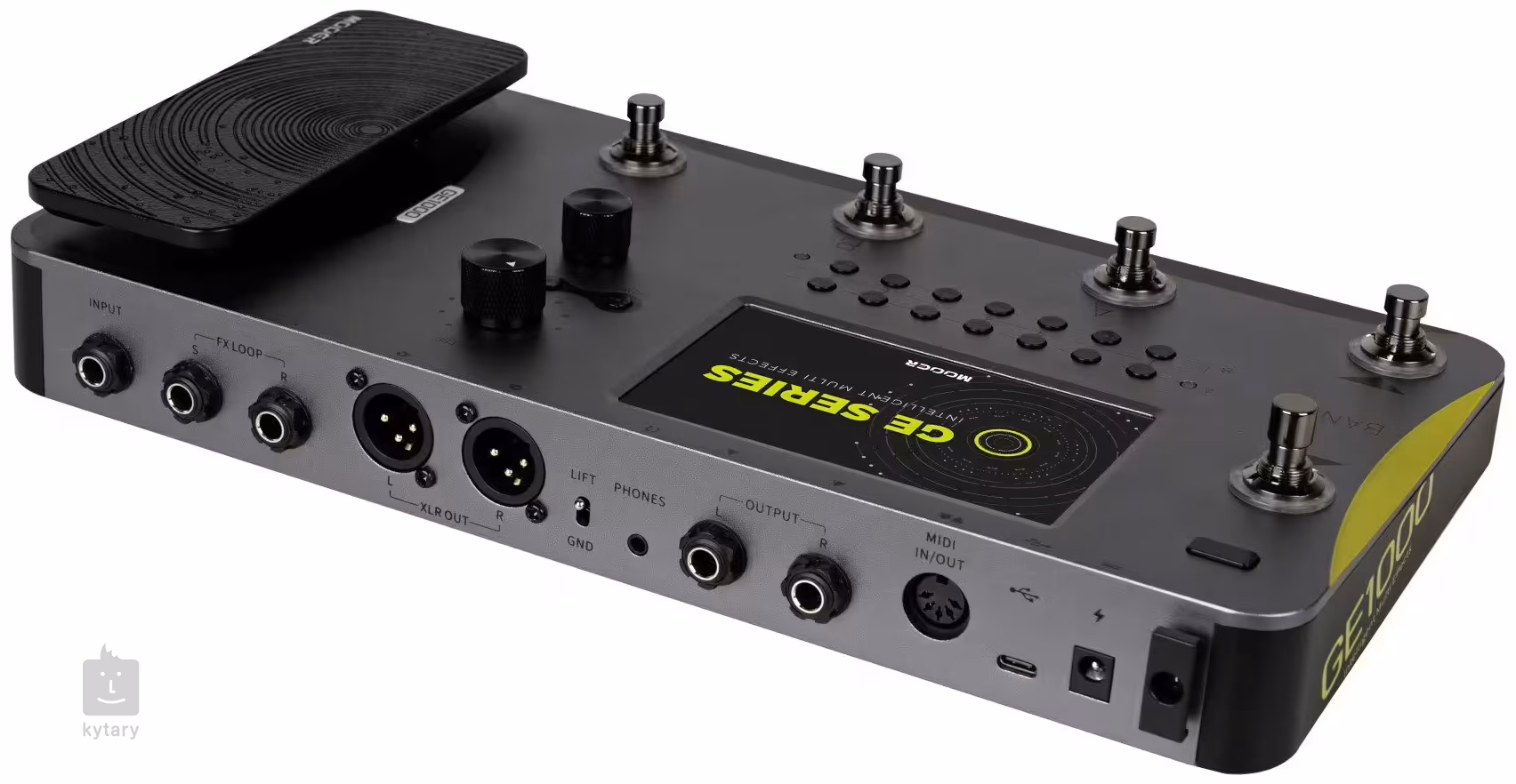 MOOER GE1000 je zatiaľ najvýkonnejší gitarový multiefekt zo série Mooer GE. Ponúka ešte väčší výber gitarových efektov, predzosilňovačov a simulácií zosilňovačov, podporu MNRS GE Cloud (IR vzorky, ktoré možno nahrávať, sťahovať a zdieľať pomocou aplikácie MOOER "GE Cloud") a všeobecnú IR podporu až do kvality 2048 vzoriek (50 slotov pre IR tretích strán), 255 užívateľských presetov, plne nastaviteľný a modifikovateľný signálový reťazec, automatický ekvalizér riadený umelou inteligenciou, ktorý upravuje EQ na základe vášho hrania, sadu nástrojov Groove Station pozostávajúcu z automatického bubeníka a looperu (môžu fungovať nezávisle alebo synchrónne), digitálnu ladičku a ovládacie prvky v podobe päťpalcového farebného dotykového displeja, multifunkčných ovládacích prvkov a integrovaného volume/expresného pedálu.