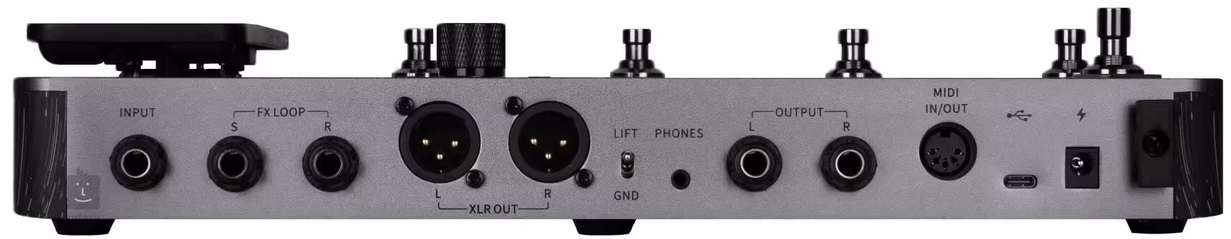 Na napájanie multiefektu môžete použiť priložený adaptér alebo vstavanú nabíjateľnú lítium-iónovú batériu (7,4 V / 4750 mAh) s výdržou až šesť hodín na jedno nabitie.