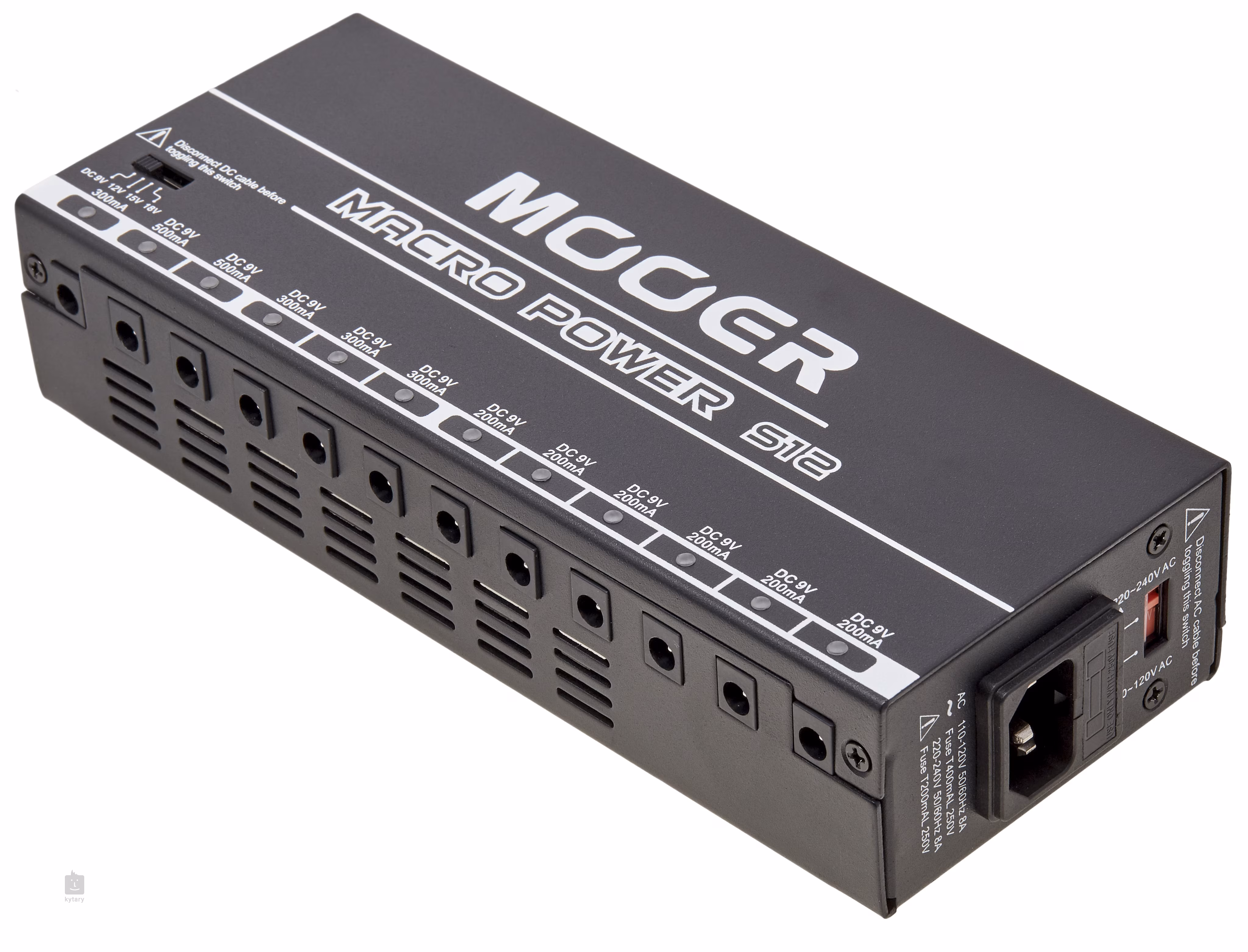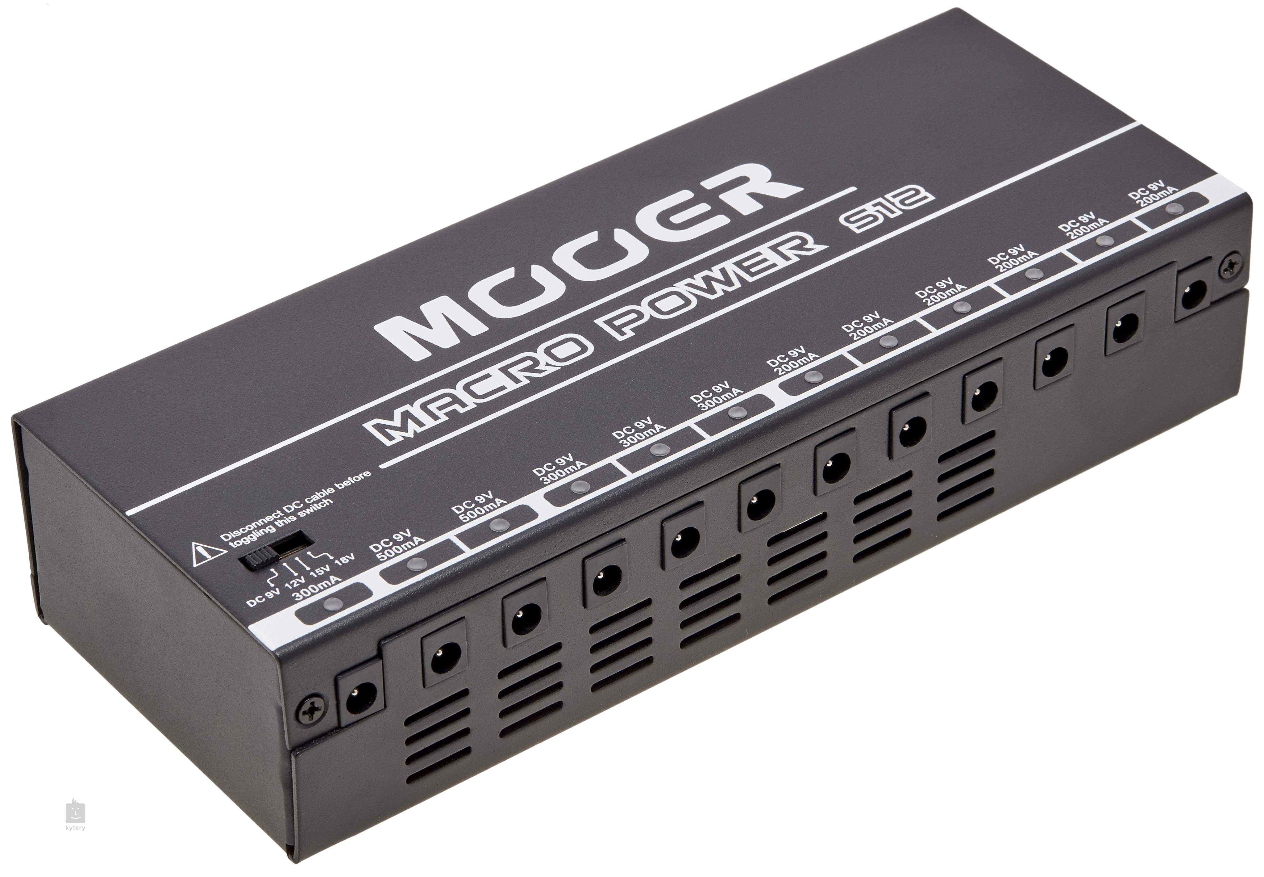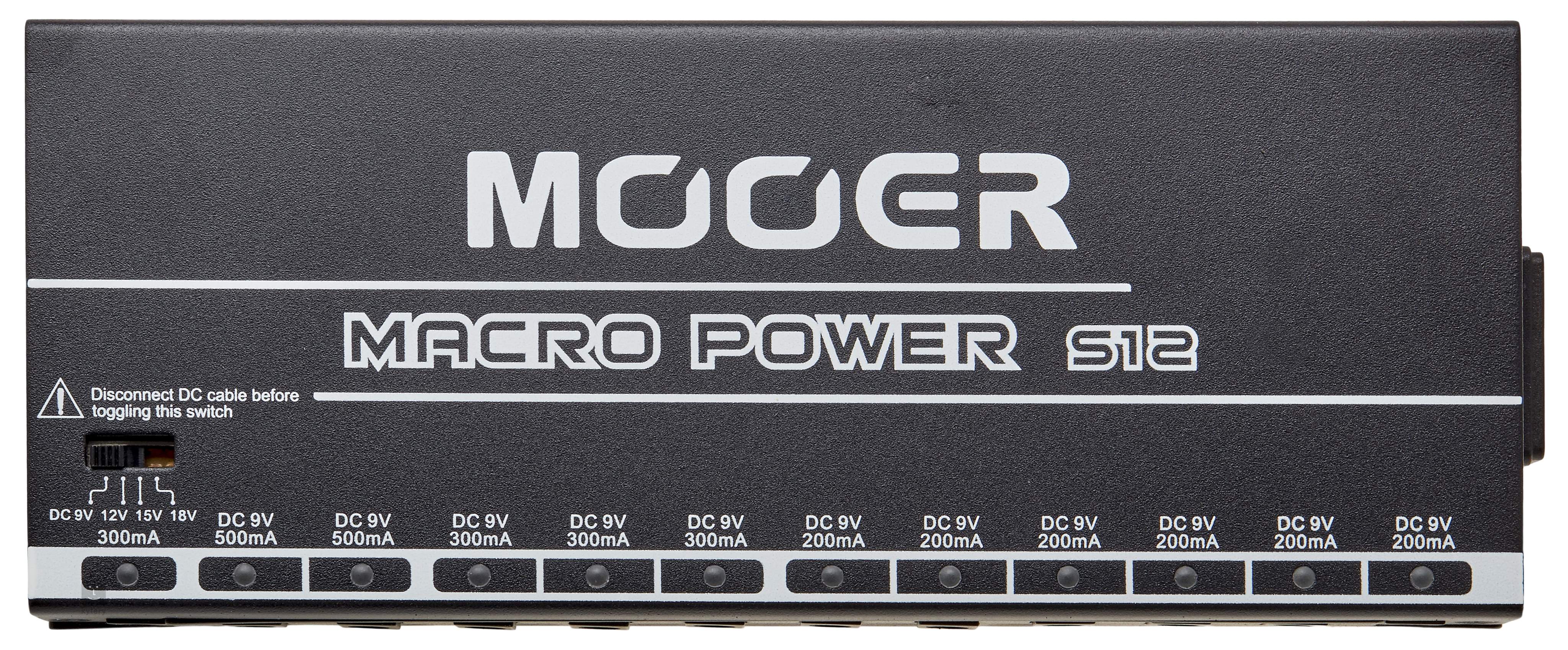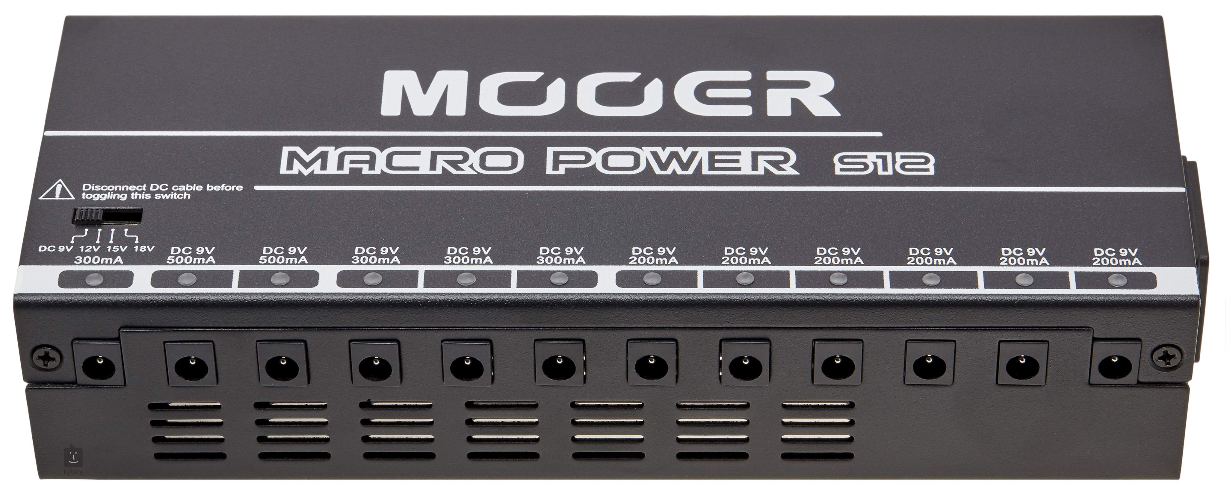 Macro Power S12 je kompaktný multiadaptér, ktorý umožňuje napájať až dvanásť efektov naraz. Ponúka celkom dvanásť výstupov s LED indikáciou, vrátane jedného s nastaviteľným napätím (9/12/15/18 V) a maximálnym odberom 300 mA a jedenástich štandardných 9 V výstupov - šesť s 200 mA, tri s 300 mA a dva s 500 mA. Prepínač sieťového napätia (110-120 V a 220-240 V) umožňuje používať multiadaptér na celom svete.