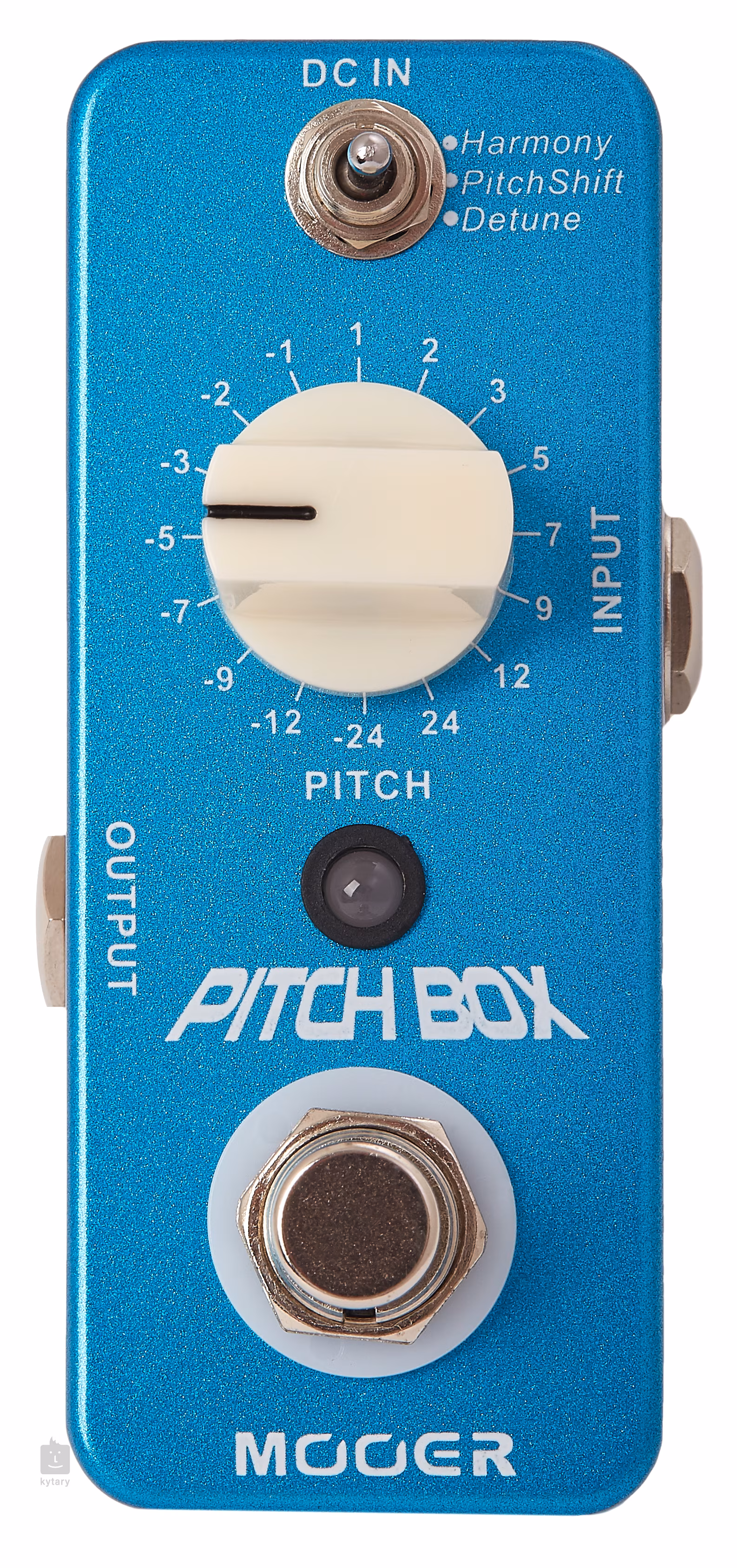 Pitch Box je kompaktný pedálový modulačný efekt zo série Micro čínskej značky Mooer. Ide o pitch schifter/harmonizátor, t. j. krabičku, ktorá prijíma zahraný akord/tón a posúva jeho výšku o zvolený interval. Ponúka širokú škálu intervalových zmien (buď nahor, alebo nadol stupnice) a celkovo tri zvukové režimy. Harmony mieša zvuk pri zvolenom intervalovom posune s pôvodným signálom a vytvára bohaté polyfonické harmónie, Pitch Schift mení noty podľa zvoleného intervalu a Detune len jemne posúva ladenie a mieša zvuk s pôvodným signálom - vytvára pôsobivý efekt podobný chorusu.