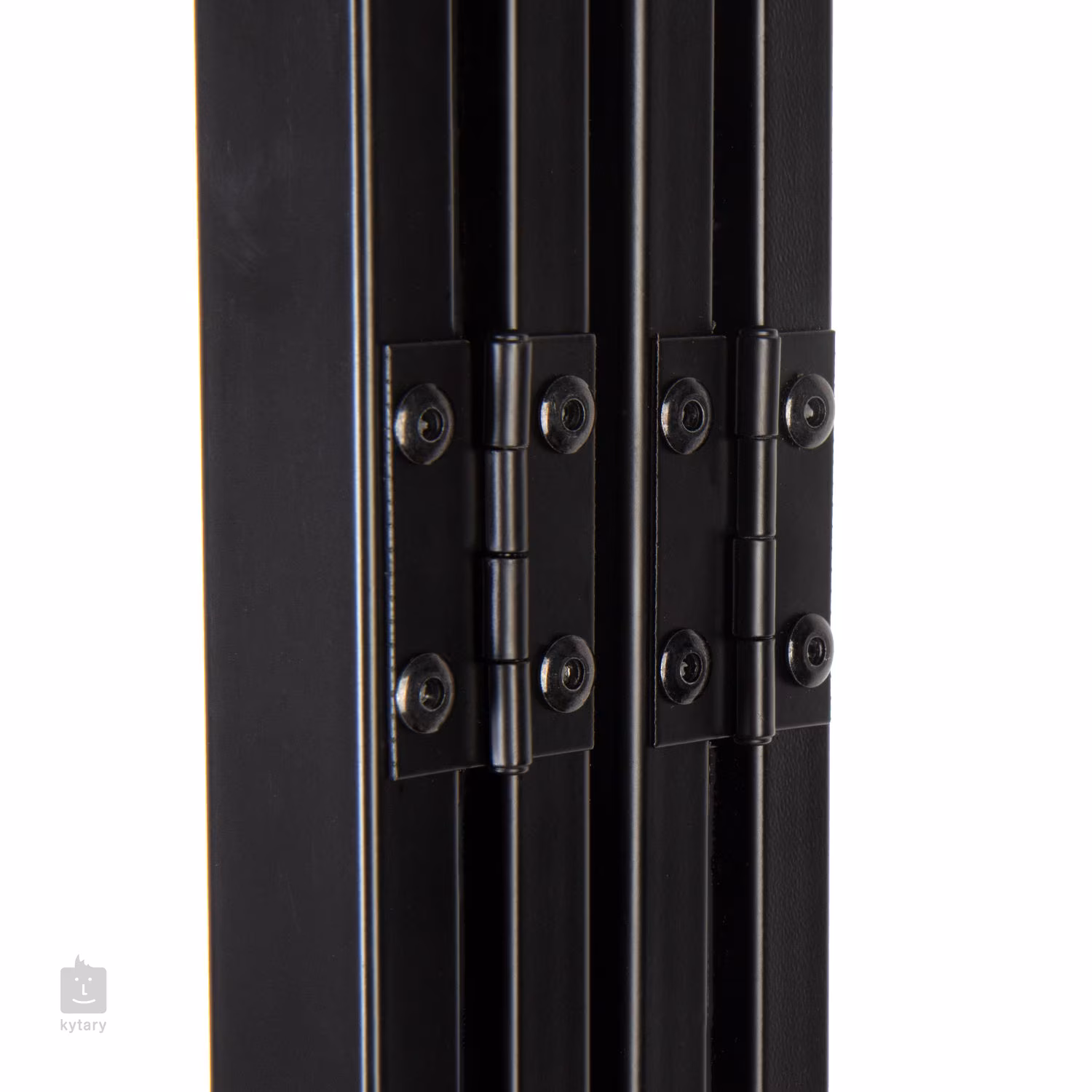 Konštrukcia je vyrobená zo stabilného oceľového rámu pokrytého čiernou látkou. To dodáva obrazovke diskrétny vzhľad a robí ju vhodnou pre akýkoľvek typ podujatia – od klubových nocí a svadieb až po firemné podujatia a konferencie. Celková hmotnosť je len 9,5 kg, čo uľahčuje prepravu, rýchlu montáž a demontáž.