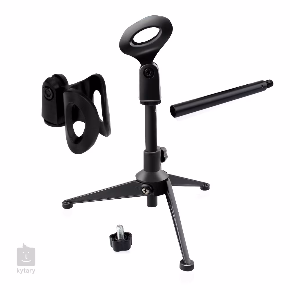 Stolný mikrofónový stojan vhodný na živé rozhlasové vysielanie, dabing alebo tvorbu originálnych videí pre váš kanál YouTube. Na mikrofónový stojan môžete umiestniť všetky typy mikrofónov do hmotnosti 1,5 kg a otáčať ho o 360°. Ľahká a odolná hliníková konštrukcia umožňuje jednoduché skladovanie alebo premiestňovanie stojana na ľubovoľné miesto vo vašom domácom štúdiu.