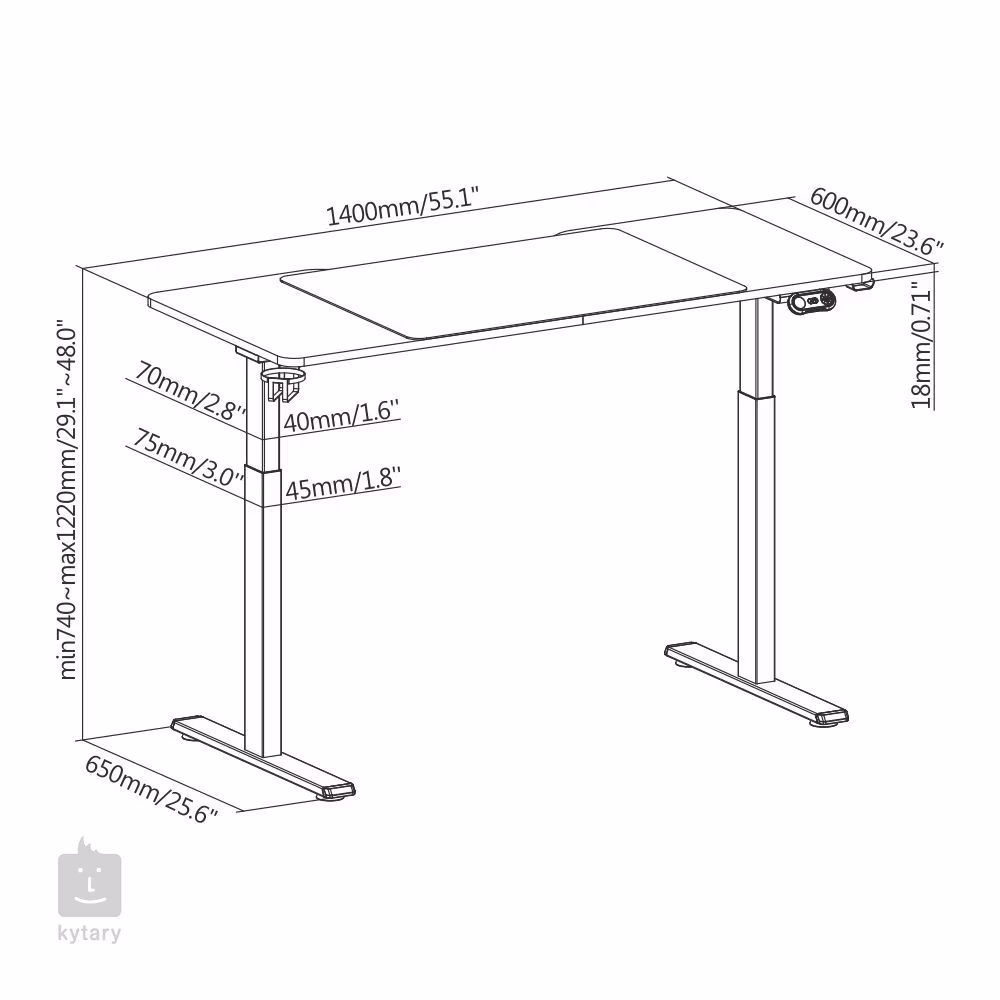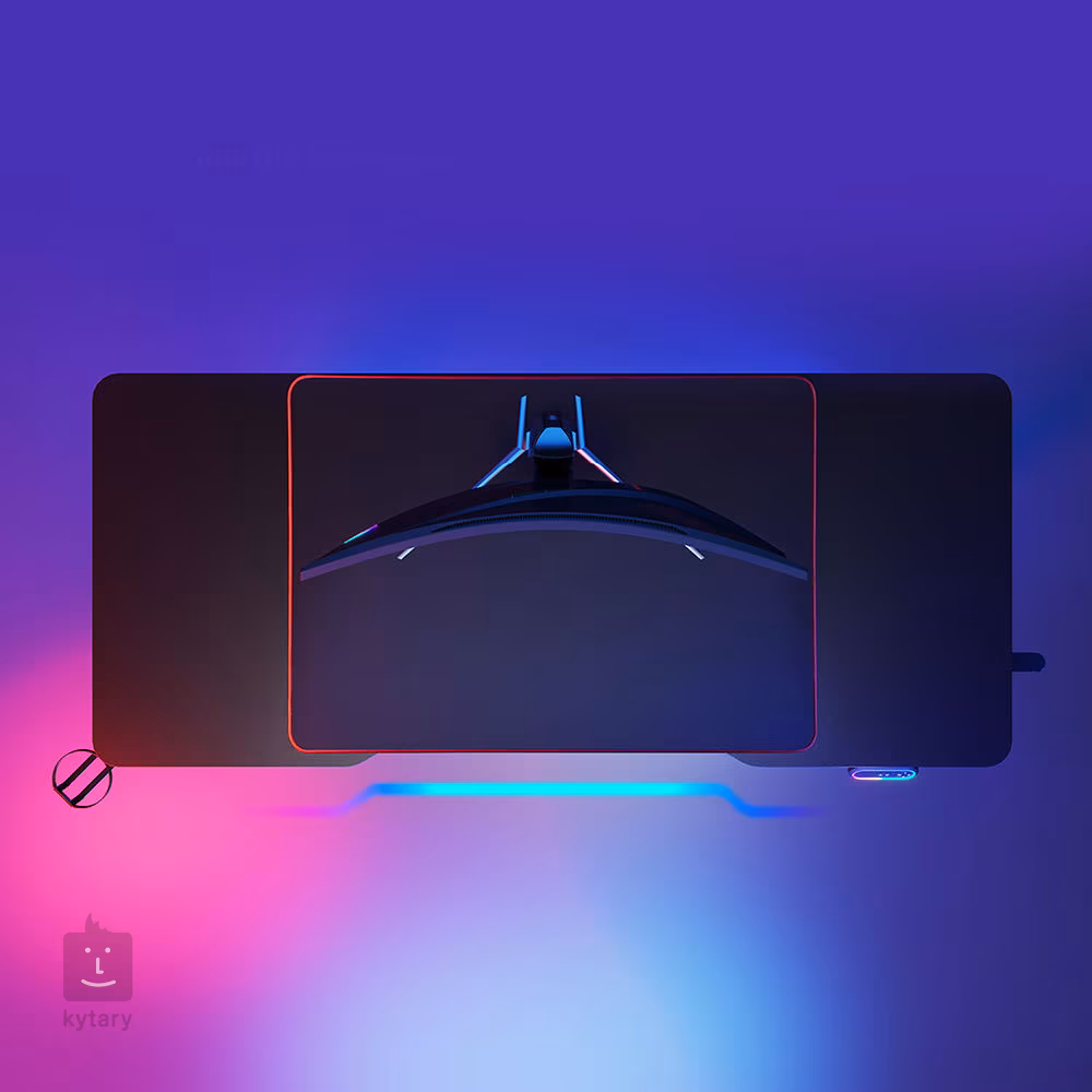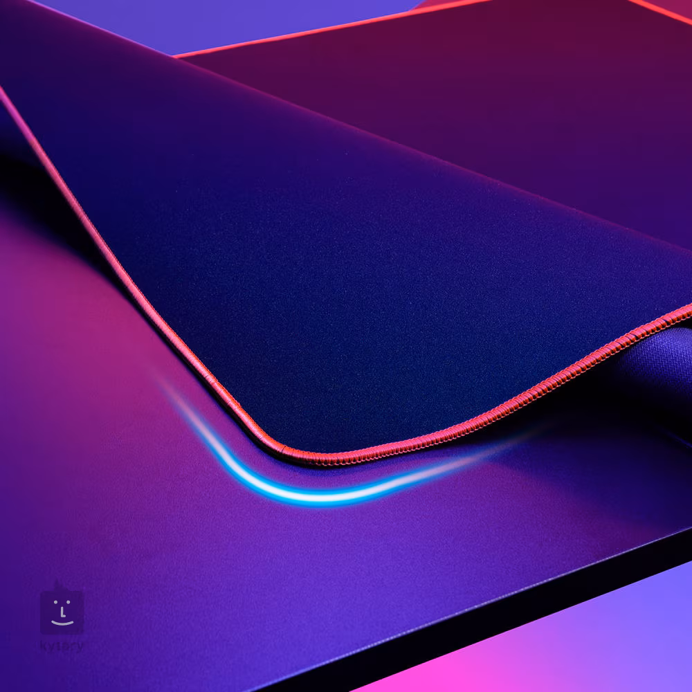 Herný stôl z ocele, hliníka a plastu s osvetlením RGB LED, nastaviteľnou výškou, nabíjacím portom USB-C (18 W), držiakmi na poháre a slúchadlá, 18 mm hrubou doskou stola a krytím IP20.