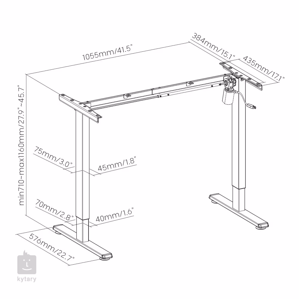 Jedná se o moderní a funkční řešení, které umožňuje nastavit výšku desky (deska není součástí dodávky) v závislosti na individuálních potřebách uživatele. Díky použití inovativní technologie elektrického ovládání lze konstrukci snadno nastavit do různých výšek, což uživatelům umožňuje pracovat v pohodlné a ergonomické poloze. Jedná se o ideální volbu pro lidi, kteří tráví hodně času u počítače nebo vykonávají práci vyžadující dlouhé sezení a chtějí pečovat o své zdraví. Výšku horní části lze nastavit v rozmezí 71 až 116 cm, což tak široké rozpětí, že umožňuje i práci vestoje. Souprava obsahuje intuitivní ovládací panel s indikací přesné výšky a funkčními tlačítky.