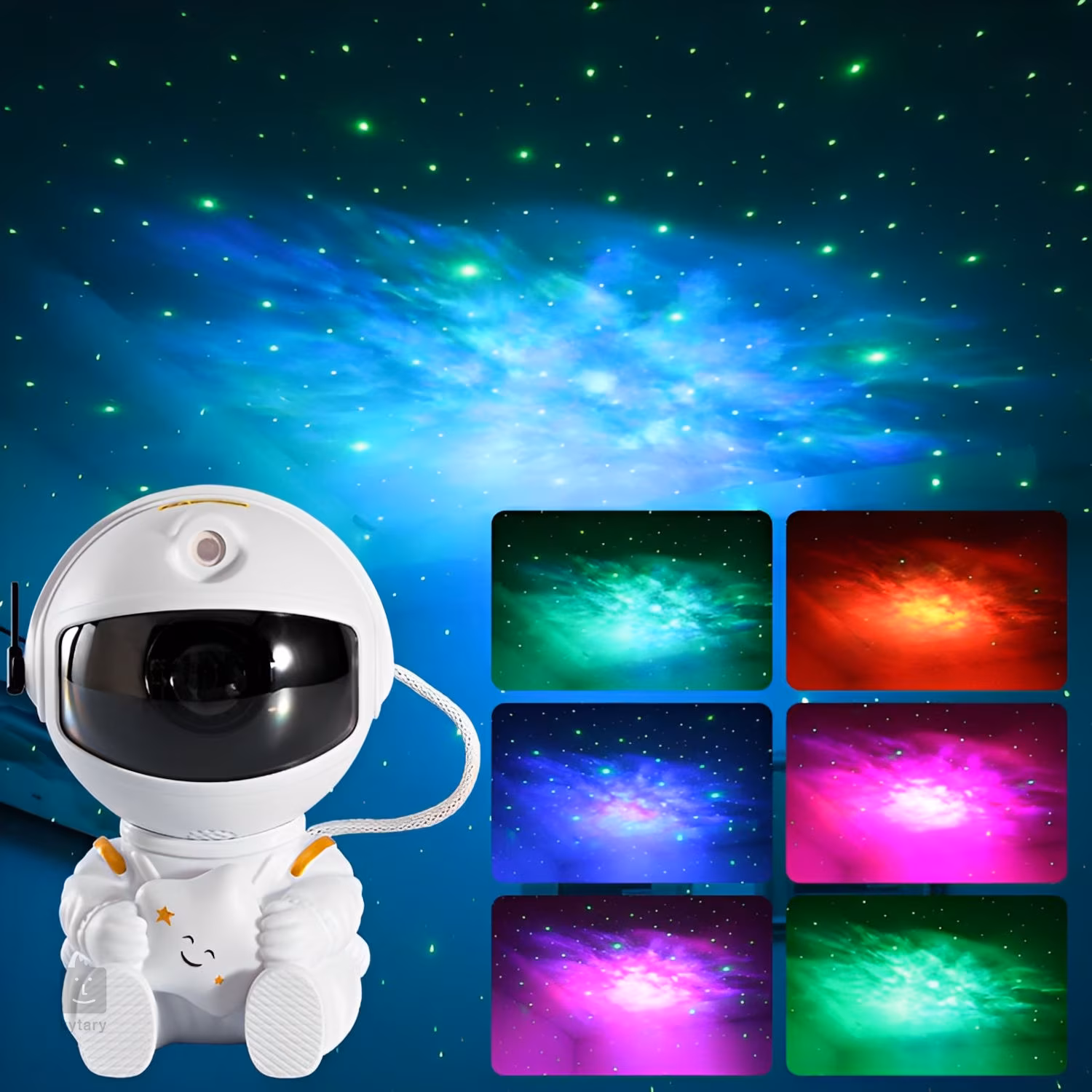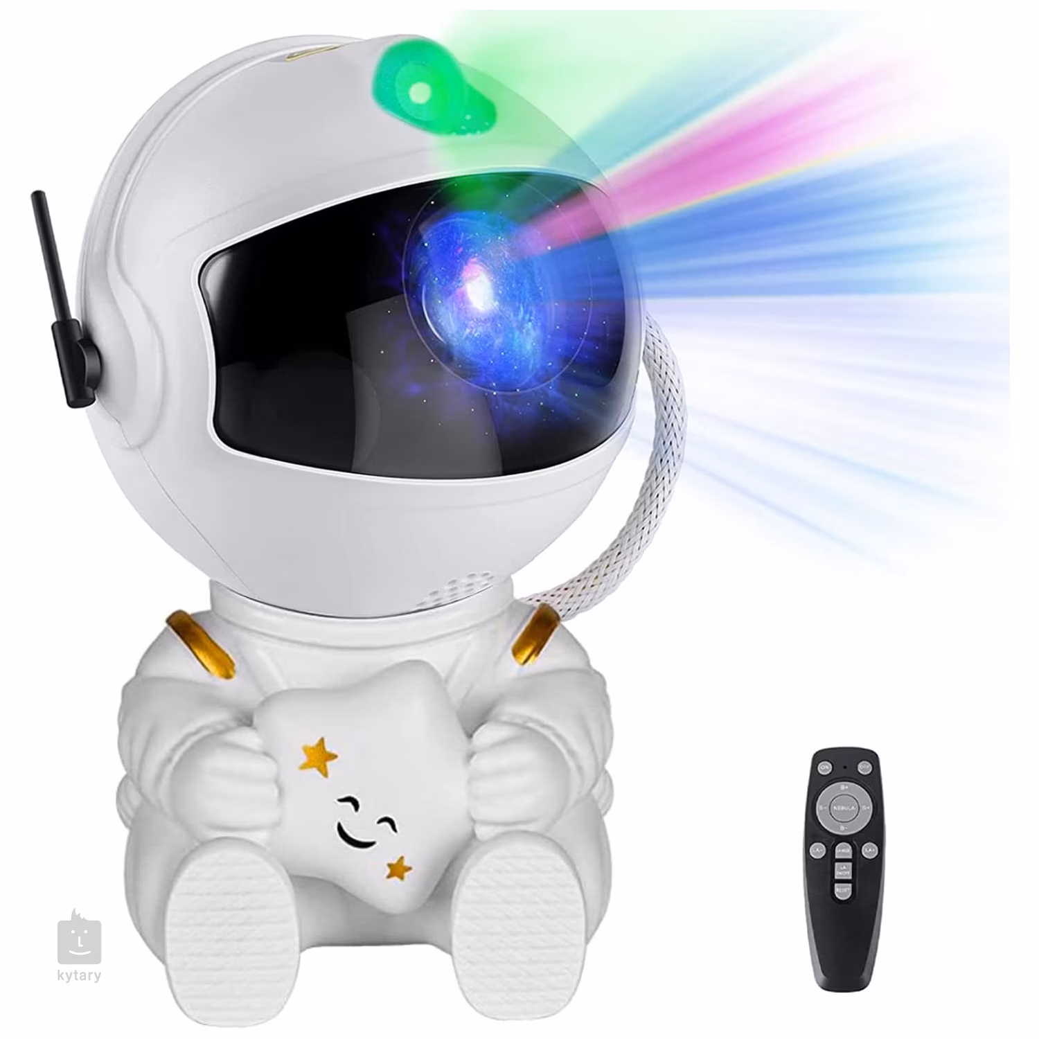 Laserový projektor Mozos HR-F2 je špeciálny projektor nočnej oblohy v tvare roztomilého astronauta, ktorý určite poteší všetkých nadšencov astronómie, deti každého veku a tiež milovníkov ambientného osvetlenia. Je to kompaktné osvetľovacie zariadenie, ktoré vám na strop premietne hviezdnu oblohu a vernú imitáciu hviezdnej hmloviny. Vďaka nemu sa budete cítiť ako v planetáriu alebo vo vesmíre. Hlava astronauta je magnetická a otočná, takže smer osvetlenia môžete ľahko prispôsobiť svojim požiadavkám. Na ovládanie použite bezdrôtový ovládač alebo tlačidlá na zadnej strane postavičky.