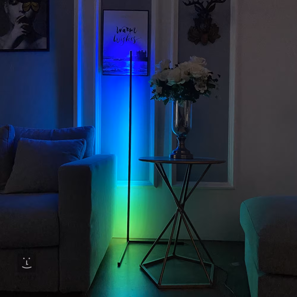 Lampa je vysoká 140 cm a je navrhnutá tak, aby po umiestnení do rohu miestnosti vytvárala ambientné osvetlenie, ktoré sa odráža od stien a osvetľuje priľahlý priestor. Je vybavená osemdesiatimi štyrmi LED diódami SMD RGB, ktoré vám poskytnú prvotriedne osvetlenie hrajúce živými farbami. Celkový výkon diód LED je 20 W a ich životnosť je 25 000 hodín. Lampa je vyrobená z odolného hliníka a vďaka svojmu modernému dizajnu sa stane minimalistickým prvkom každého interiéru. Ovládanie zabezpečuje bezdrôtový diaľkový ovládač.