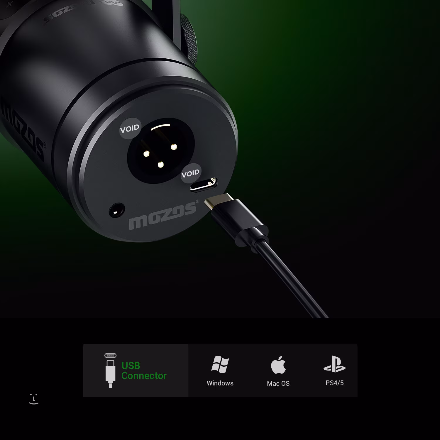 Jednou z hlavných výhod tohto modelu je jeho široká kompatibilita. Mikrofón má tri rozhrania – XLR, USB-C a 3,5 mm jack – čo umožňuje pripojenie k počítačom s Windows alebo macOS, konzolám a audio rozhraniam. Vďaka podpore USB 1.1 / 2.0 / 3.0 nie je potrebné inštalovať žiadne ovládače, takže môžete začať nahrávať ihneď po pripojení.