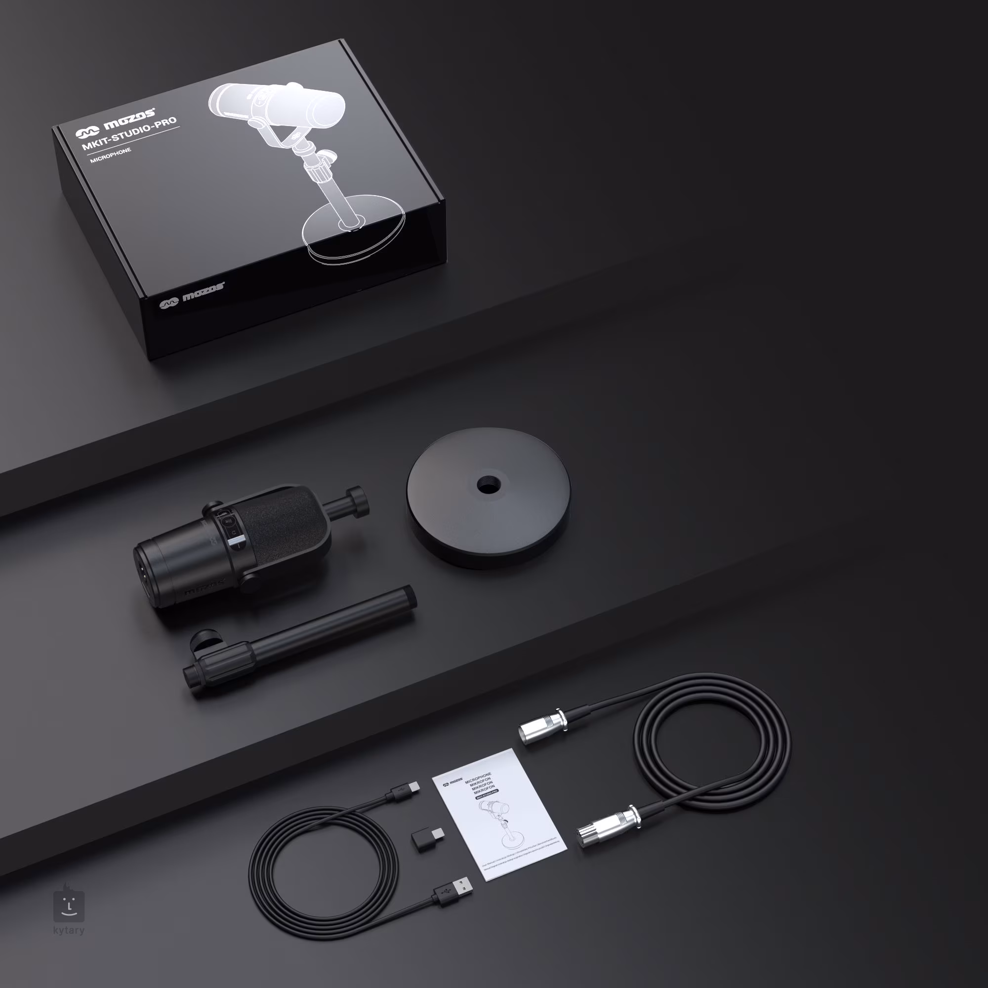 Telo mikrofónu je vyrobené z odolnej kombinácie hliníkovej zliatiny a ABS plastu, čo zaručuje vysokú pevnosť a dlhú životnosť. Súčasťou balenia je aj stabilný železný stojan s nastaviteľnou výškou od 230 do 325 mm, ktorý minimalizuje vibrácie a nežiaduce pohyby počas nahrávania. S nízkou hladinou šumu (S/N 94 dB) a citlivosťou -52 dB ±3 dB zachytáva MKIT-STUDIO-PRO aj jemné nuansy reči, zatiaľ čo absencia externého napájania zjednodušuje použitie v akomkoľvek prostredí.