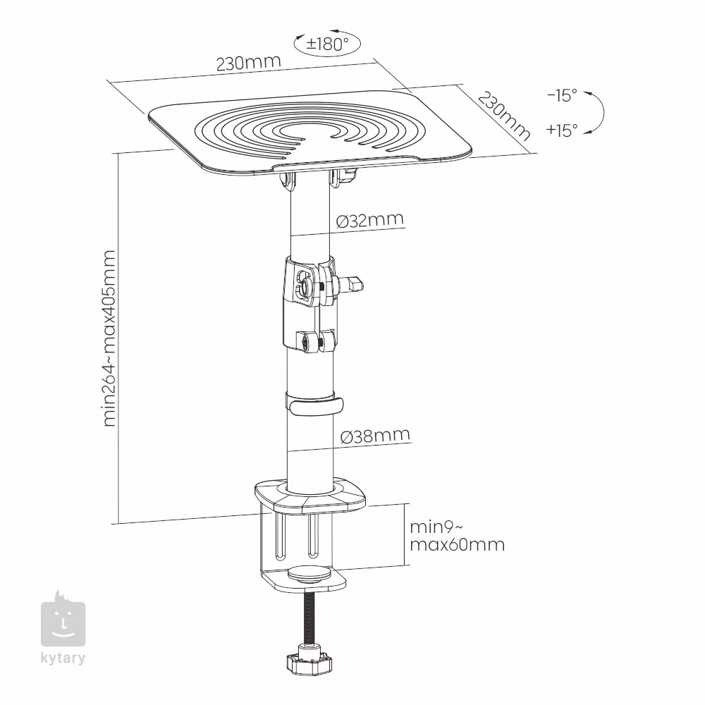 Robustný výškovo nastaviteľný stojan vhodný pre štúdiové monitory a reproduktory. Je vyrobený z odolnej ocele a má závitovú skrutku na pripevnenie k doske stola vysokej až 62 mm. Na stojan môžete namontovať väčšinu monitorov na trhu, takže je vhodný do nahrávacích štúdií, ale oceníte ho aj v domácom kine, skúšobni alebo kancelárii.