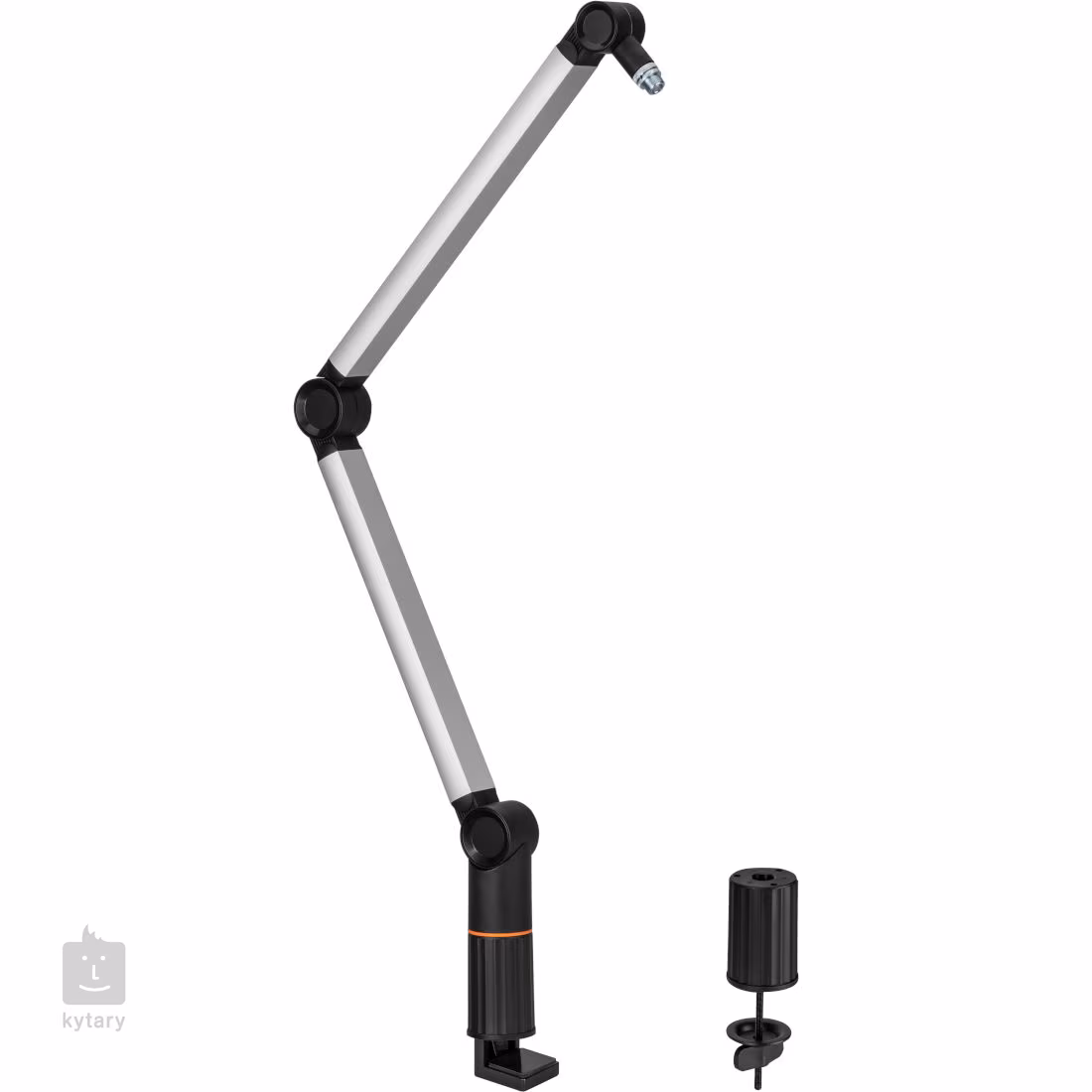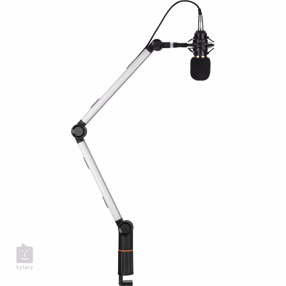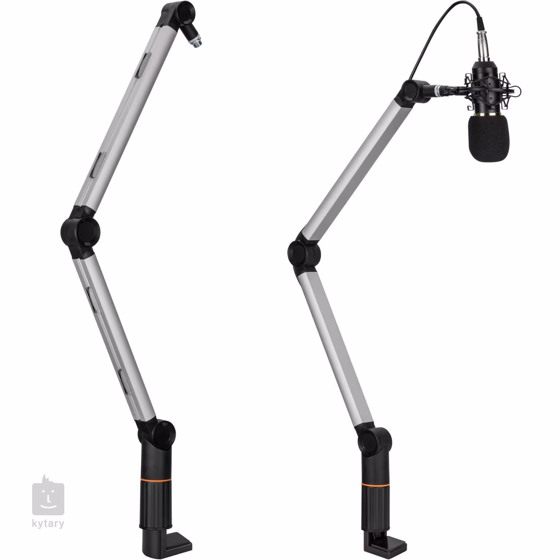 Prvotriedny mikrofónový stojan vhodný pre všetkých kreatívcov a zvukových nadšencov, ako aj pre študentské rádio, živé vysielanie alebo youtubing. Stojan je vyrobený z kombinácie ocele, plastu a hliníka, má integrovaný manažment káblov, možnosť otáčania o 360 stupňov a v neposlednom rade pohodlné nastavenie sklonu a výšky. Stojan sa upevňuje pomocou závitu na dosku stola s výškou do 60 mm. Súčasťou balenia je redukcia so závitom 5/8".