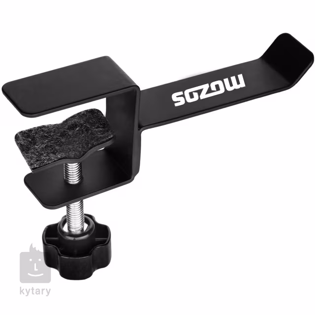 Robustný oceľový držiak na slúchadlá. Vďaka protišmykovej svorke môžete držiak umiestniť na hladký alebo lesklý povrch.