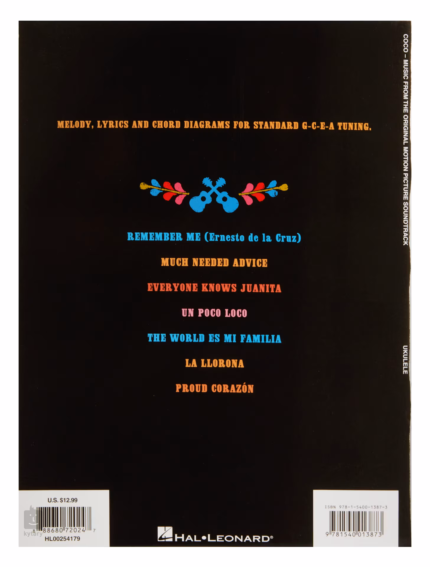 Táto publikácia ponúka sedem piesní z 3D animovaného filmu Coco v úprave pre ukulele. Notový materiál obsahuje melodickú linku spevu, text a schémy s akordovým sprievodom. Ladenie v G-C-E-A.