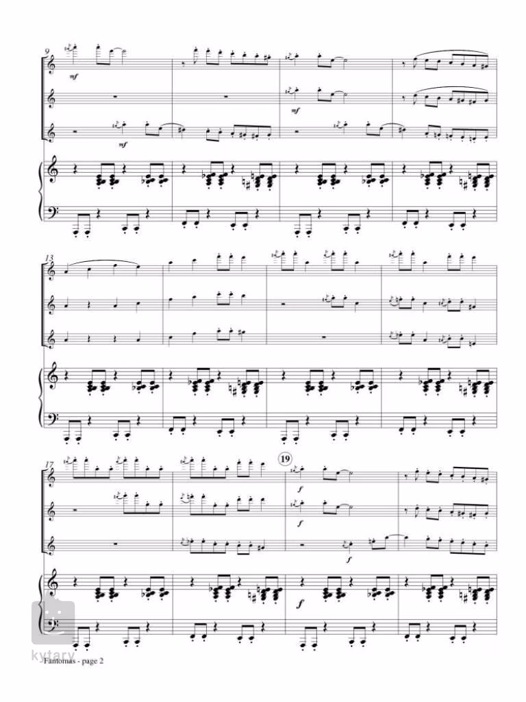 "Fantomas" amerického skladateľa bieloruského pôvodu Eugena Magalifa je napísaný pre dve až tri flauty a klavír.
