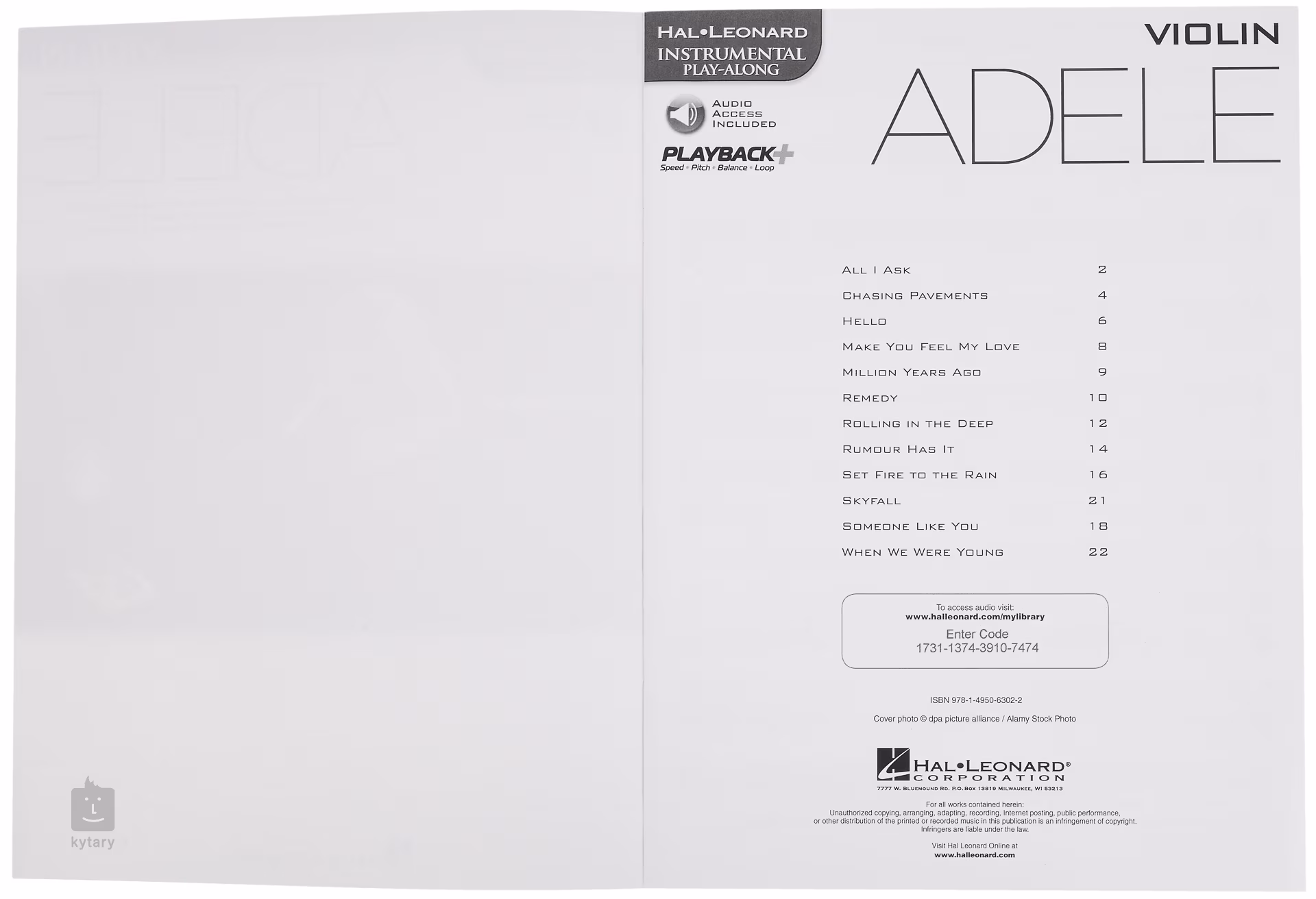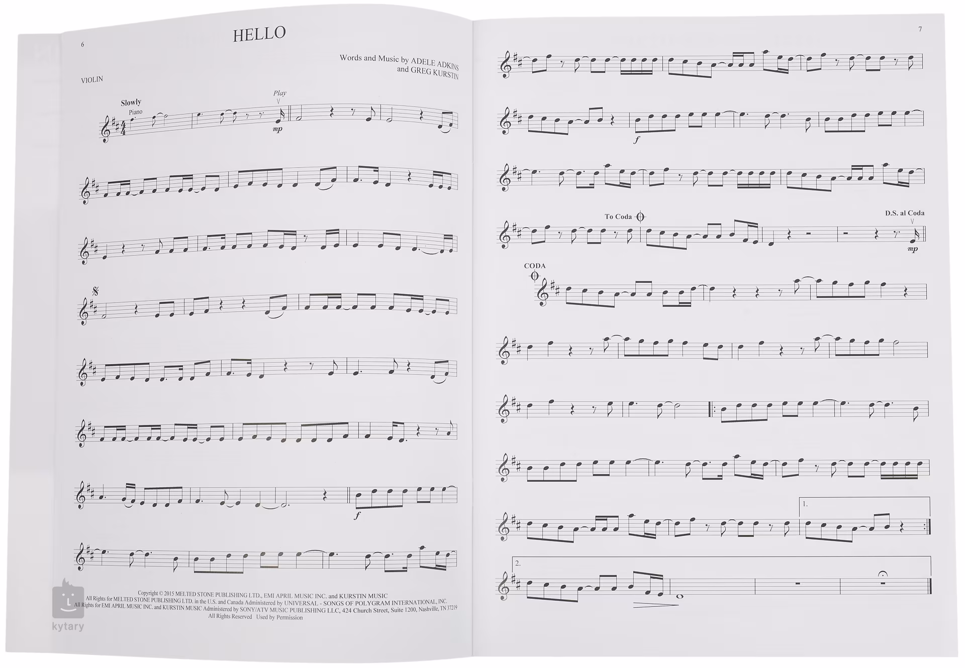 Táto publikácia ponúka dvanásť najznámejších hitov britskej speváčky Adele v úprave pre husle. Publikácia obsahuje prístup k online zvukovým podkladom, ktoré môžete spomaliť pre lepší obraz bez zmeny ladenia alebo slučky.