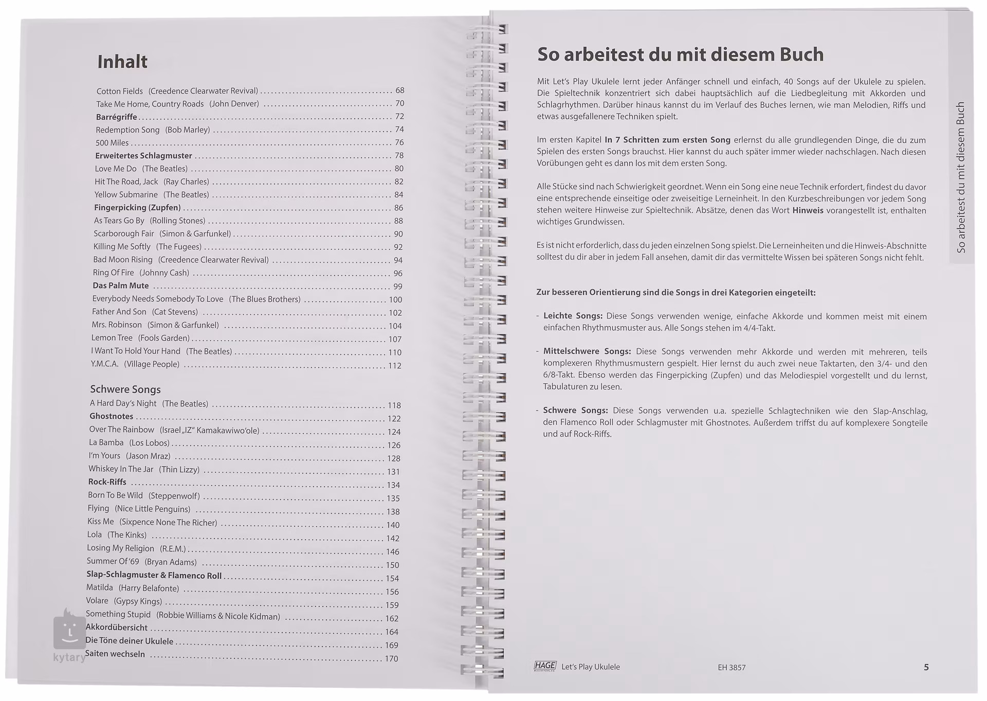 Časť publikácie venovaná spevníkom obsahuje 40 piesní z oblasti populárnej hudby a rocku, ktoré okrem skladieb pre ukulele, ako napríklad "Over the Rainbow", obsahujú aj klasiku od The Beatles, Rolling Stones, R.E.M, Johnnyho Casha, Bryana Adamsa a ďalších známych interpretov. Skladby sú zoradené podľa náročnosti. Krátke vysvetľujúce pasáže medzi skladbami vám pomôžu rozšíriť si vedomosti a pochopiť najdôležitejšie techniky/princípy hry na ukulele.