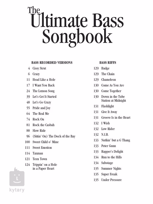 Na viac ako dvesto stranách ponúka The Ultimate Bass Songbook presné transkripcie, basové riffy, sólové aranžmány a jednoduché basové melódie sedemdesiatich piesní vybraných z rôznych hudobných žánrov.