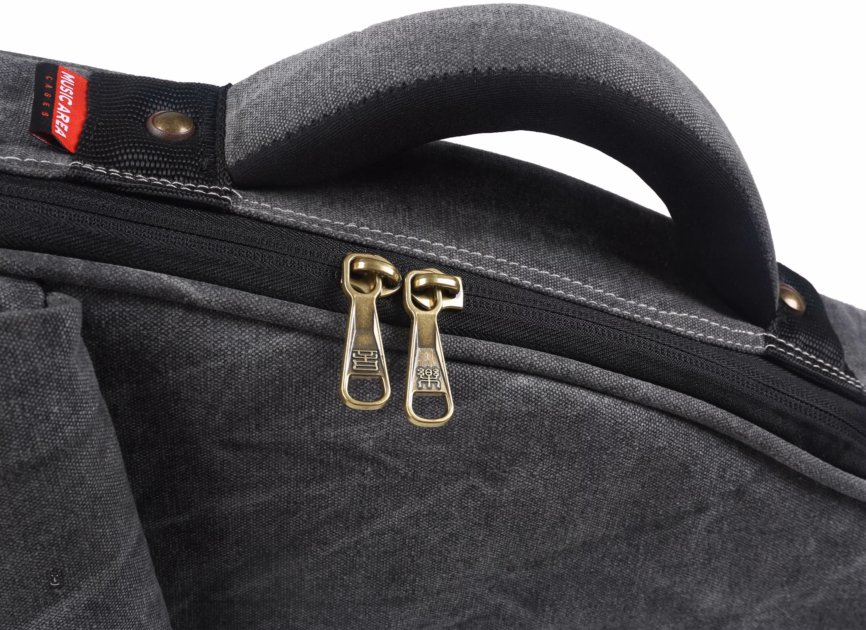Puzdro disponuje tromi vreckami na noty a menšie príslušenstvo. Najväčšie vrecko je uzatvárateľné pomocou magnetu, takže sa do neho ľahko a rýchlo dostanete aj bez pomoci druhej ruky. Na pohodlné prenášanie slúžia dva polstrované chrbtové popruhy a bočné držadlo, ktoré vám zabezpečia maximálny komfort aj pri dlhom cestovaní. Puzdro zaujme aj moderným elegantným dizajnom.