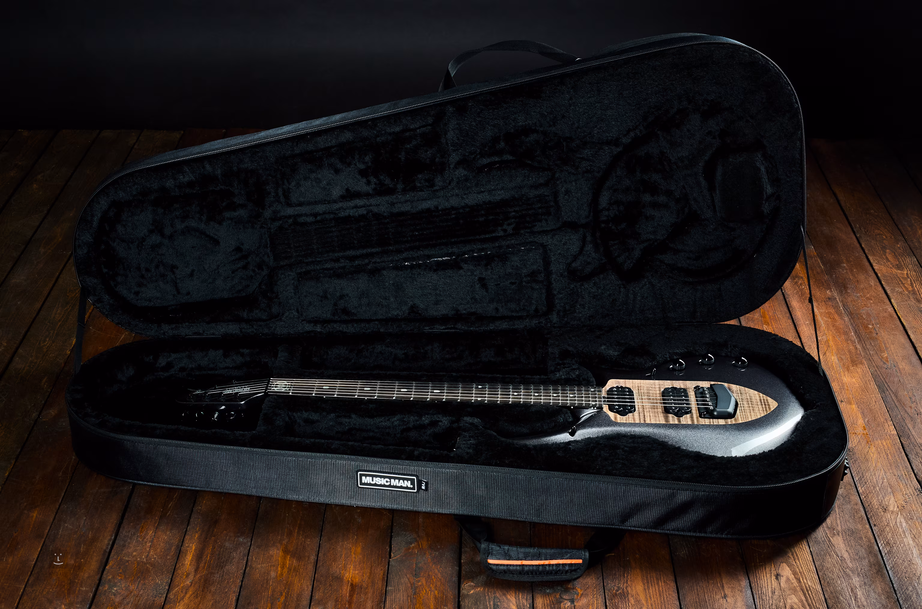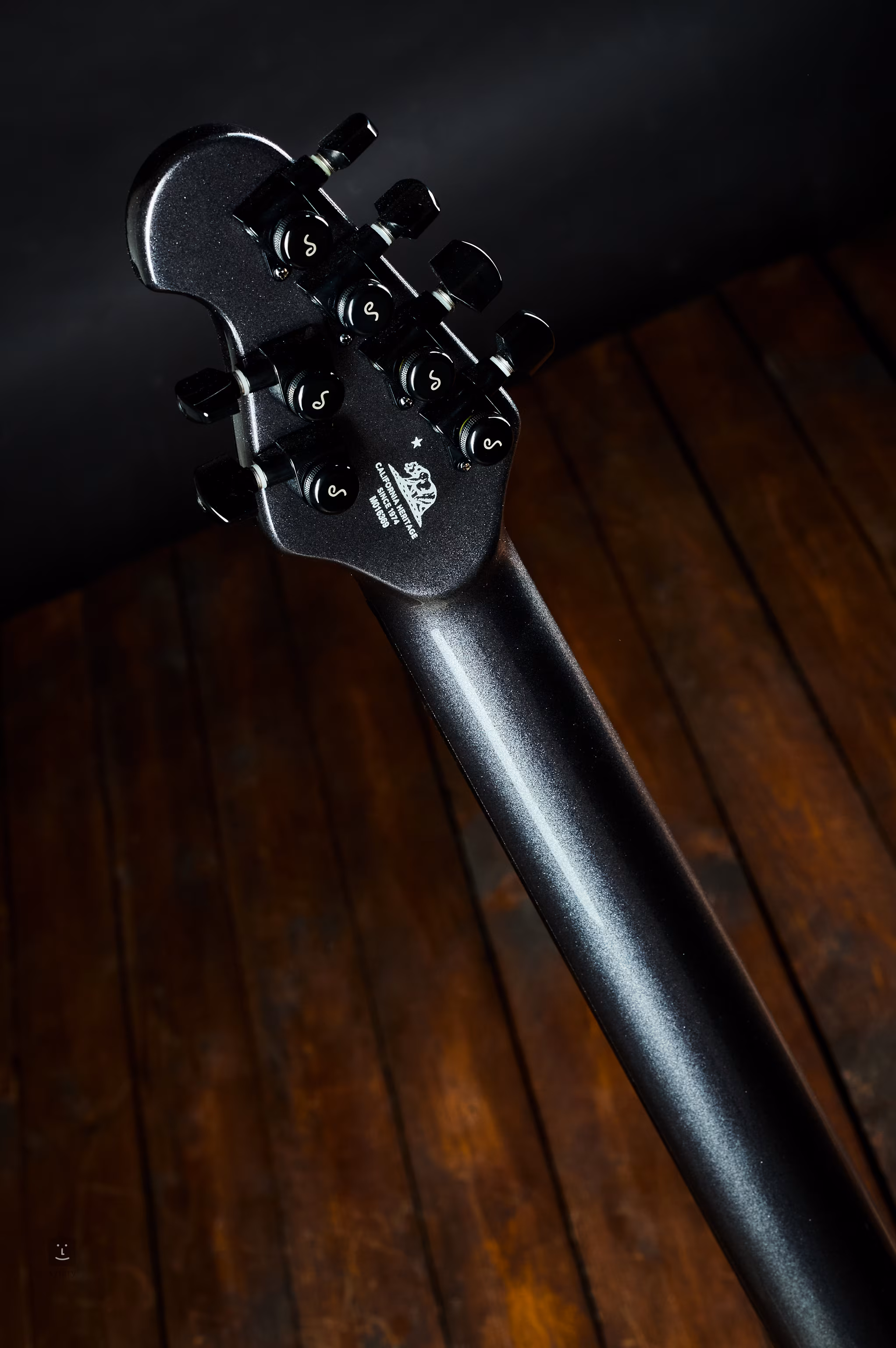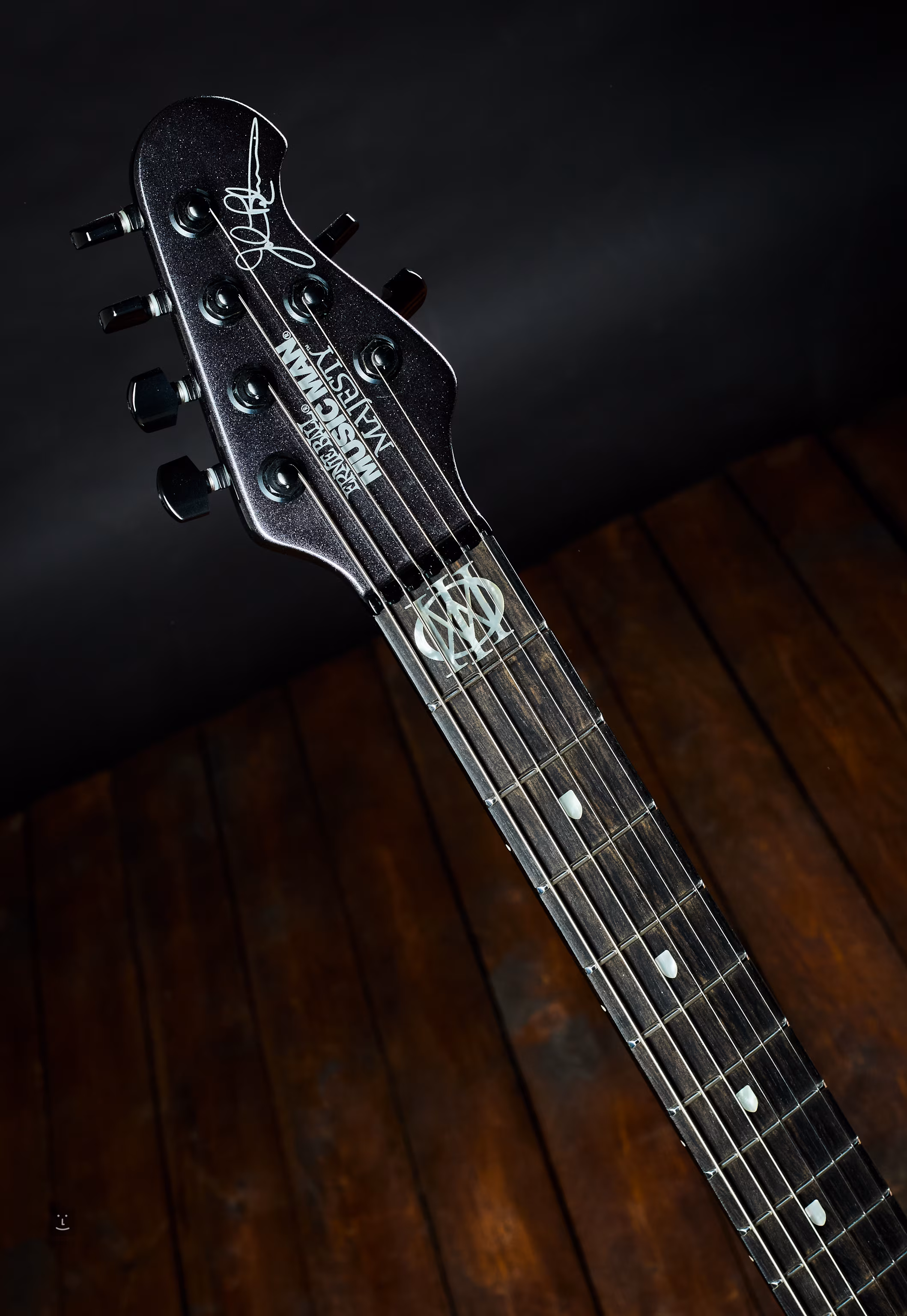 Hmatník s 24 nerezovými pražcami je rozložený na menzúre 25,5" (648 mm). Hardvér je v čiernej farbe: uzamykacia mechanika Schaller M6-IND; Custom John Petrucci Music Man® floating tremolo headstock.