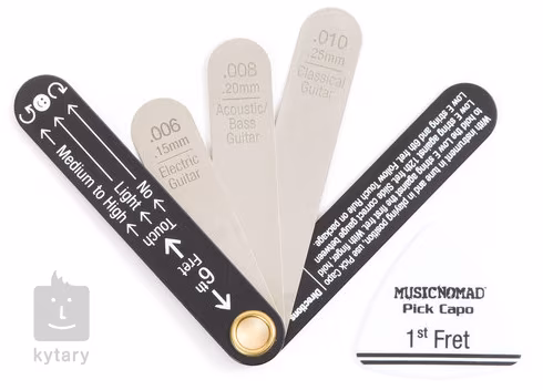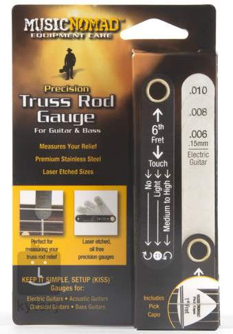 Správne napnutie krku je jednou z kľúčových súčastí správne nastaveného nástroja - tento nástroj vám umožní zvládnuť jeho nastavenie rýchlo a presne. Na nástroji nájdete tri najčastejšie používané miery napätia krku (.006", .008", .010"), ktoré sú vhodné pre akustické, elektrické a klasické gitary a basgitary. Okrem toho nájdete v súprave inovatívny "pick capstan", ktorý spolu s pokynmi vytlačenými na rukoväti prístroja umožňuje jednoduché a presné nastavenie. Prístroj je vyrobený z prvotriednej nehrdzavejúcej ocele a nezanecháva zvyšky oleja.