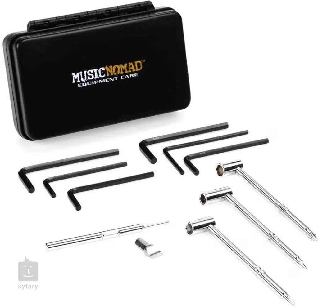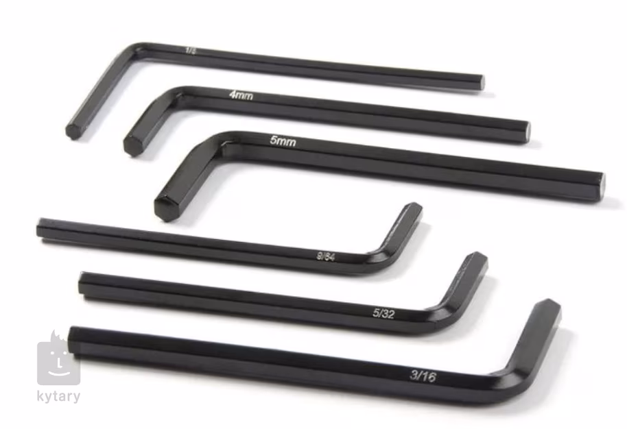 Praktická sada nástrojov na nastavenie krku všetkých gitár (vhodné pre Blackbird, Cort, Epiphone, ESP, Fender, Gibson, Godin, Gretsch, Guild, Ibanez, Jackson, PRS, Seagull, Takamine, Taylor, Yamaha a mnoho ďalších). Súčasťou balenia je šesť imbusových kľúčov (5/32", 9/64", 1/8", 3/16", 4mm, 5mm), tri nástrčné hlavice (1/4", 5/16", 7mm) s magnetickými krížovými skrutkovačmi na druhej strane a jeden plochý bit 3/8". Celá súprava je uložená v robustnom hliníkovom kufríku.