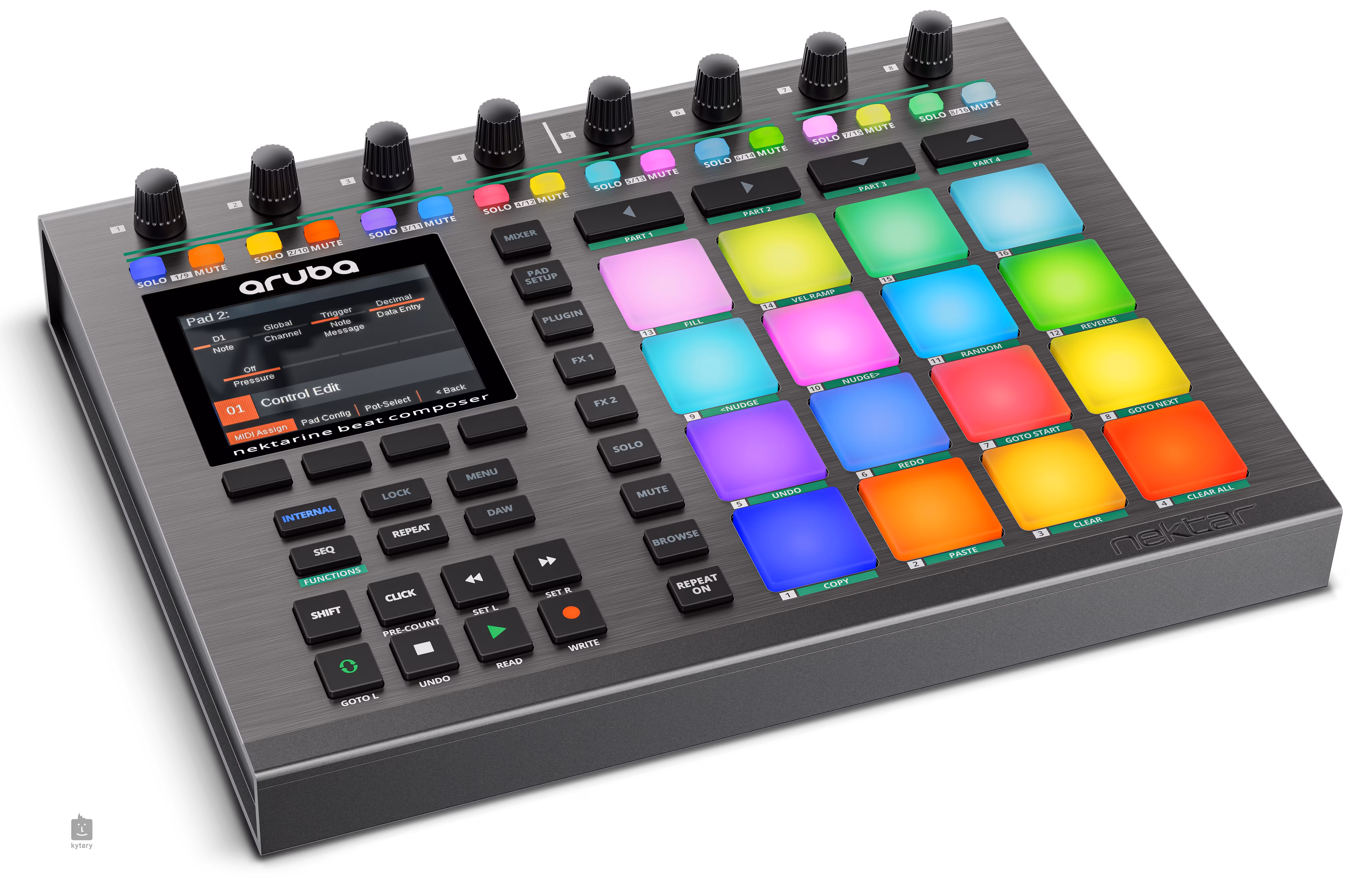 Aruba od spoločnosti Nektar Technology je inovatívny a kompaktný groovebox, ktorý ponúka všetko, čo potrebujete na tvorbu hudby a ovládanie hudobných aplikácií. Tento malý, ale výkonný kontrolér je navrhnutý tak, aby bol ľahko prenosný a zároveň plne vybavený na profesionálnu hudobnú produkciu.