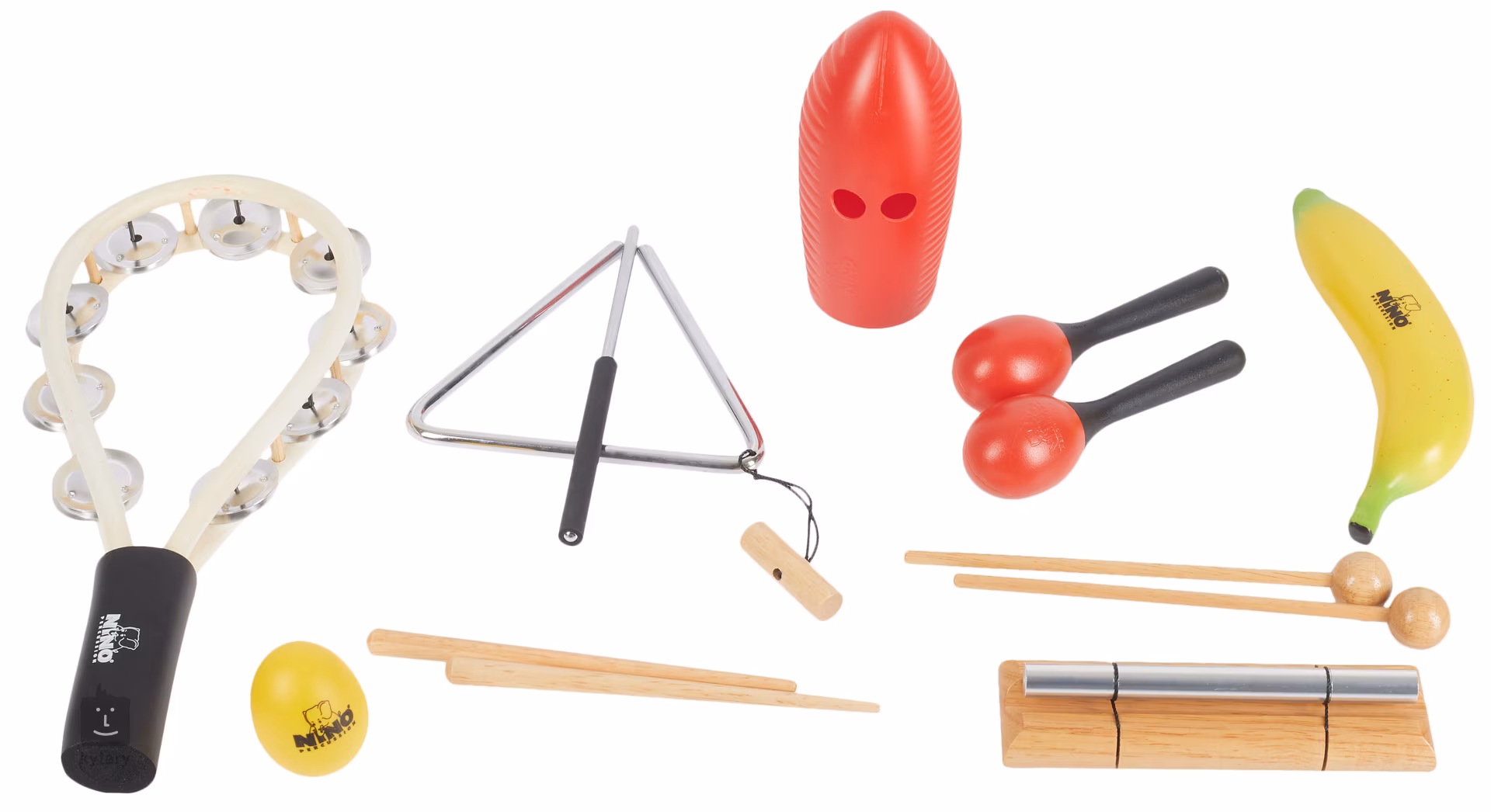 Táto veľká sada bicích nástrojov obsahuje 15 rôznych nástrojov. Vďaka tomu je to ideálna sada pre celú triedu alebo väčšie skupiny.