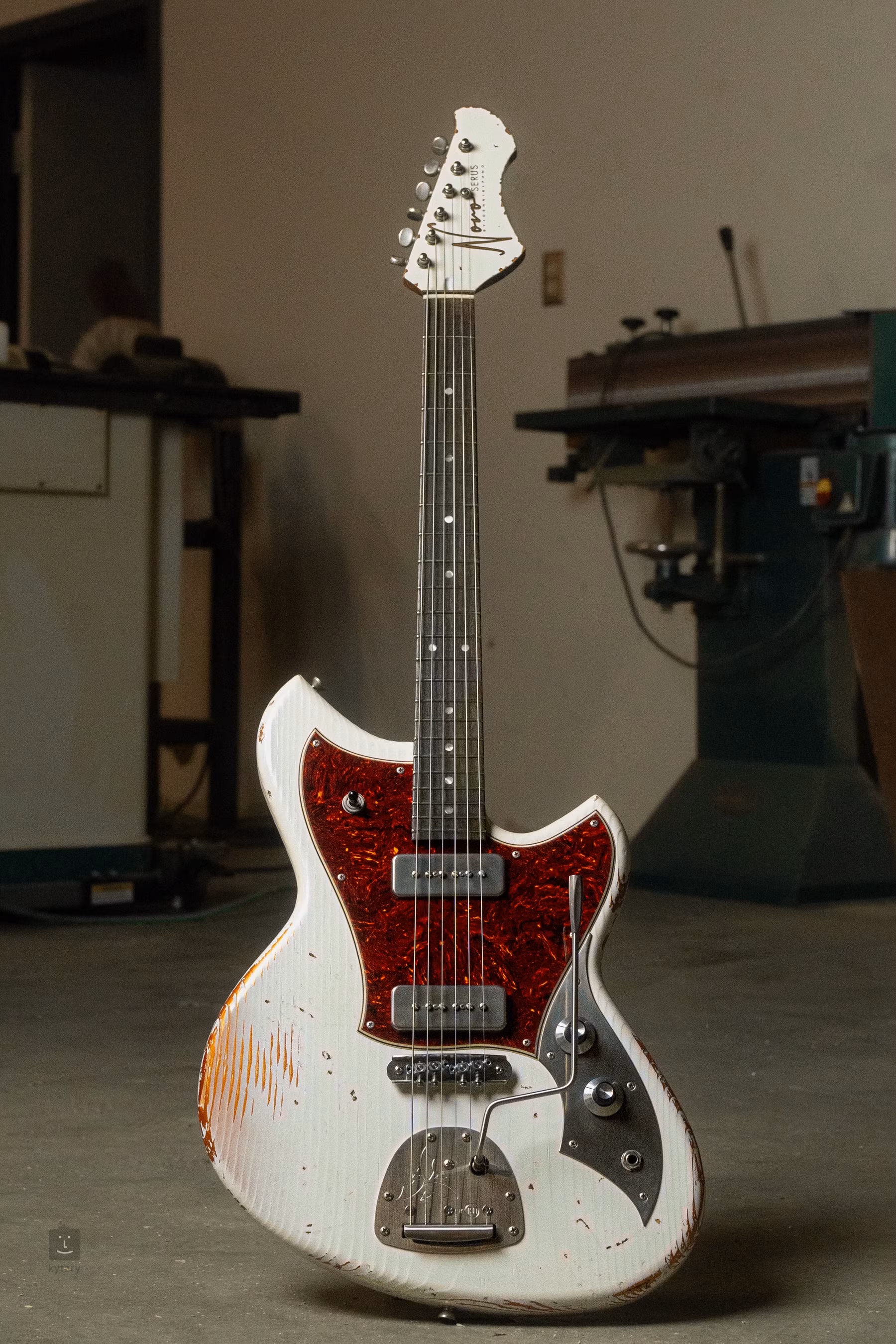 Elektrická gitara Serus J Olympic White v kombinácii s farbou Aztec Gold bola navrhnutá renomovaným americkým výrobcom gitár Dennisom Fano, zakladateľom značiek Fano a Novo Guitars.