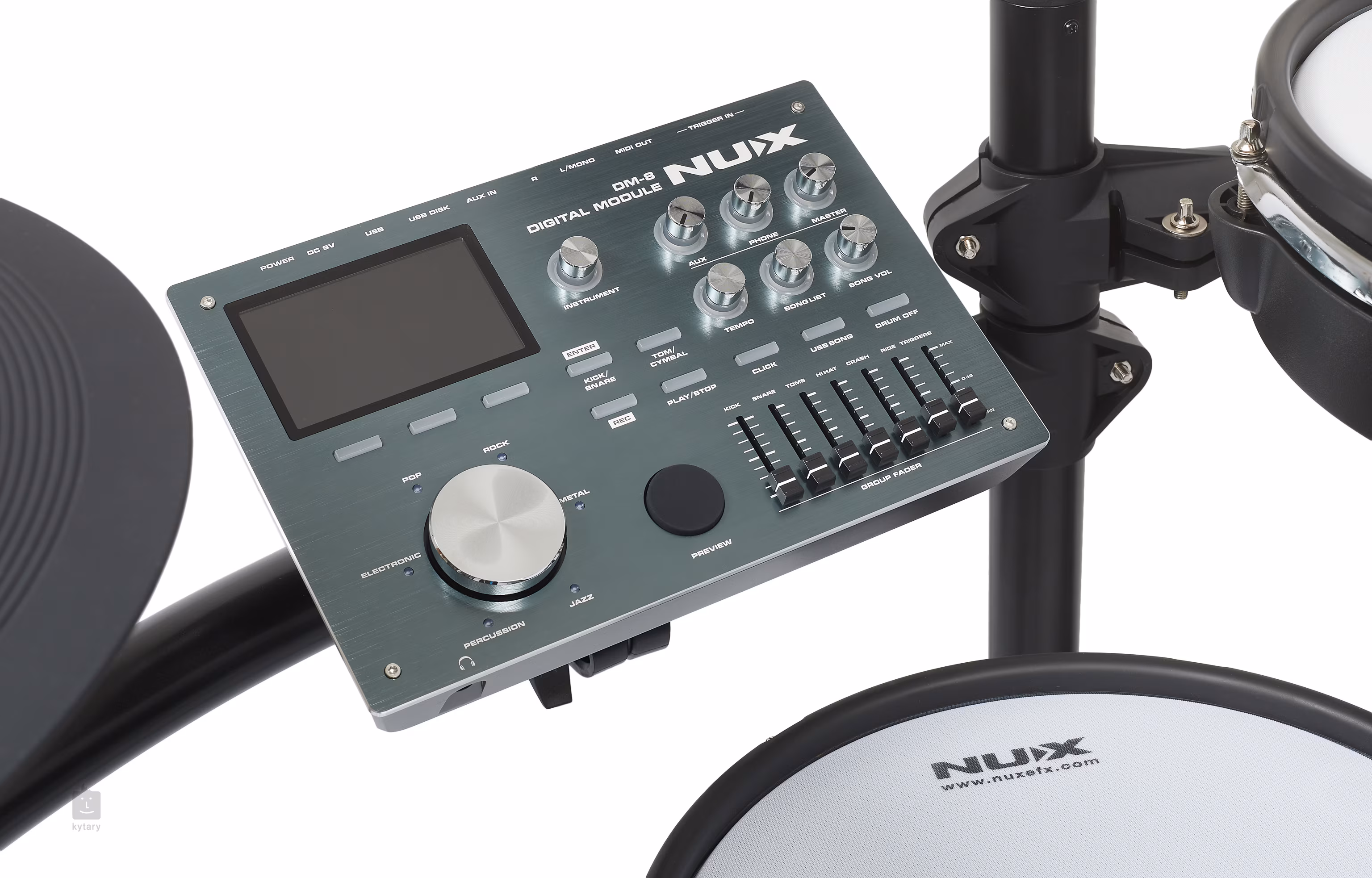 NUX DM-8 od spoločnosti NUX sú elektronické bicie, ktoré sa vyznačujú autentickým a realistickým pocitom z hry. Robustné držiaky sú nielen dizajnovo zaujímavé, ale sú aj odolne navrhnuté, takže sa môžete spoľahnúť na ich spoľahlivosť.