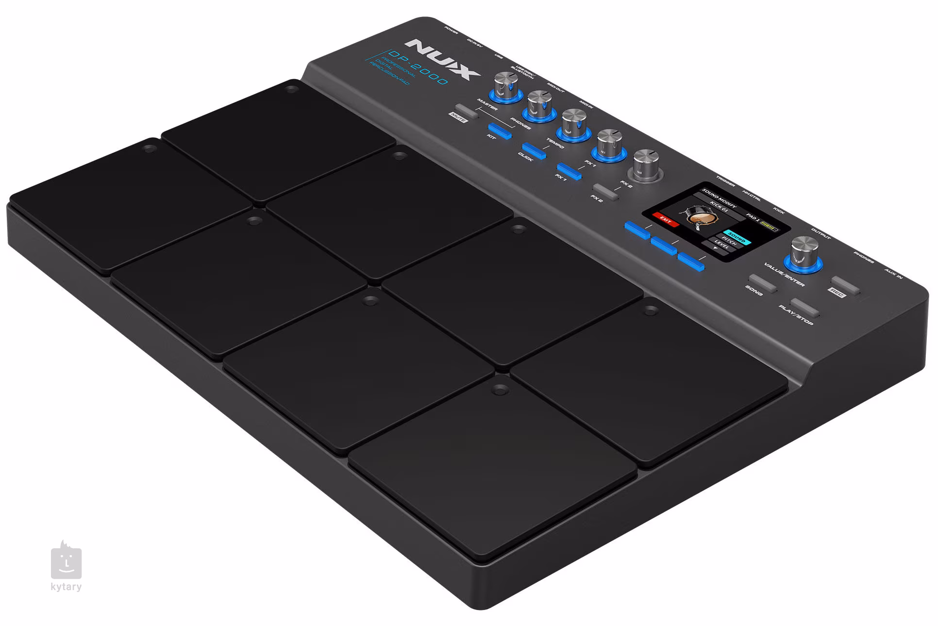 Perkusný pad NUX DP-2000 je ideálnym nástrojom pre každého, kto chce rozšíriť svoj arzenál perkusívnych zvukov. Obsahuje kvalitné zvuky akustických bicích vrátane súpravy NUX DM-8, vlajkovej lode značky v oblasti bicích nástrojov. Zároveň tu nájdete aj tradičné perkusie a elektronické bicie. Túto širokú paletu si môžete prispôsobiť svojim potrebám pomocou ekvalizéra a šiestich vstavaných efektov. Hladké a efektívne ovládanie zabezpečuje intuitívne používateľské rozhranie a farebný displej. Okrem toho môžete svoju zvukovú knižnicu neustále rozširovať vďaka možnosti importu vlastných bicích samplov cez USB vstup.