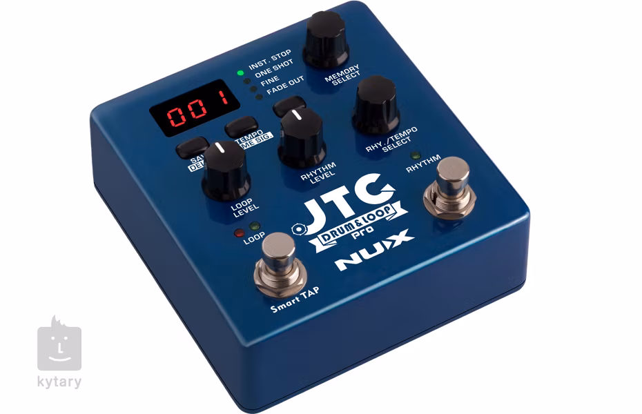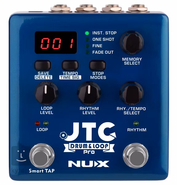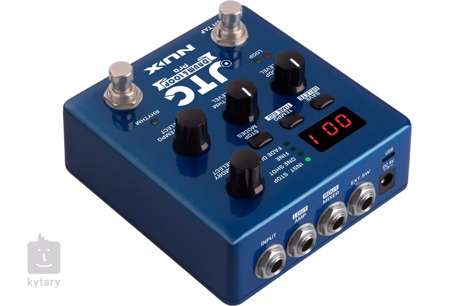 JTC Drum & Loop PRO (NDL-5 ) od spoločnosti Nux je pokročilý looper a bicí automat s jednoduchým ovládacím panelom, ktorý obsahuje veľkorysú kapacitu 6 hodín záznamu a 256 pamäťových slotov na ukladanie slučiek. Všetky základné funkcie loopingu (nahrávanie, prehrávanie, overdub, undo, redo, stop, clear) sú obsluhované pravým nožným spínačom, zatiaľ čo ľavý nožný spínač slúži na ovládanie rytmickej časti pedálu. Integrovaný bicí automat vám ponúka 40 rytmických schém v rôznych žánroch (pop, rock, blues, metal a ďalšie) a dve tempové značky (4/4, 3/4). Stlačením nožného spínača počas prehrávania danej schémy pridáte rytmickú výplň, ktorá trvá až do konca taktu.