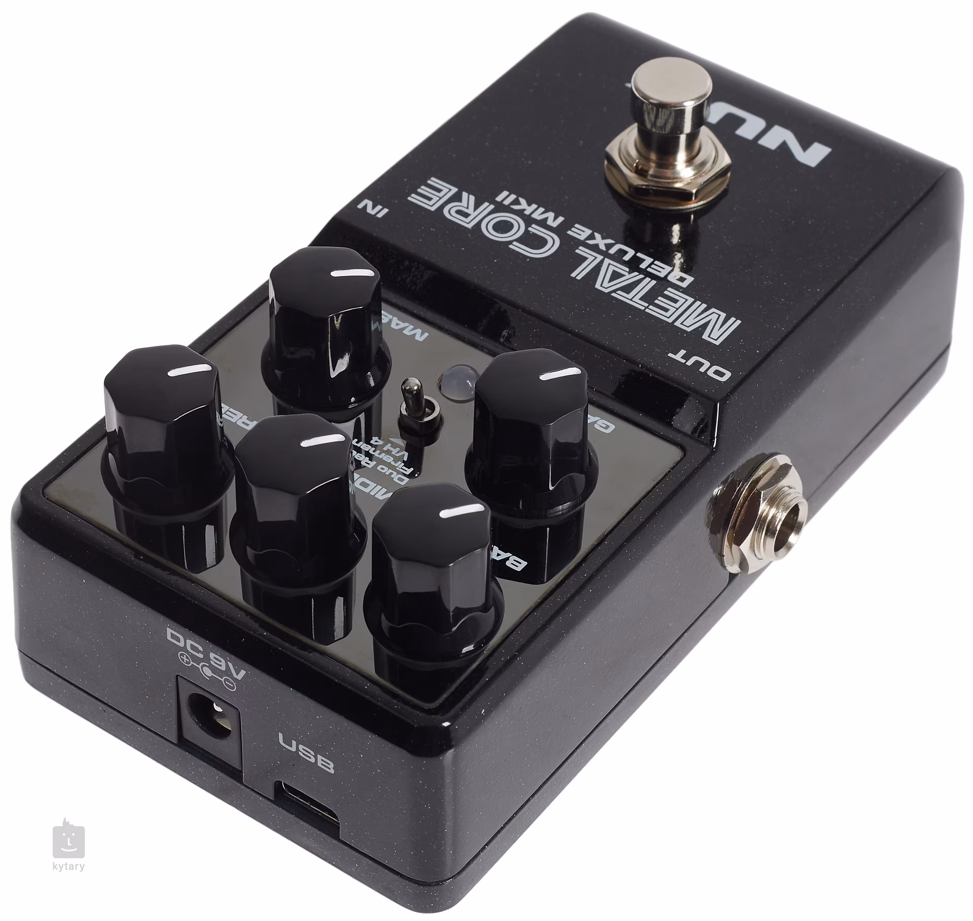 NUX METAL CORE DELUXE MKII je predzosilňovač/deformátor typu amp-in-a-box s tromi typmi známych gitarových zosilňovačov s vysokým zosilnením, medzi ktorými môžete prepínať - Duo Rect založený na zvuku Mesa Boogie Dual Rectifier, Fireman (Friedman BE-100) a VH4 založený na charakteristike štvorkanálového zosilňovača Diezel.