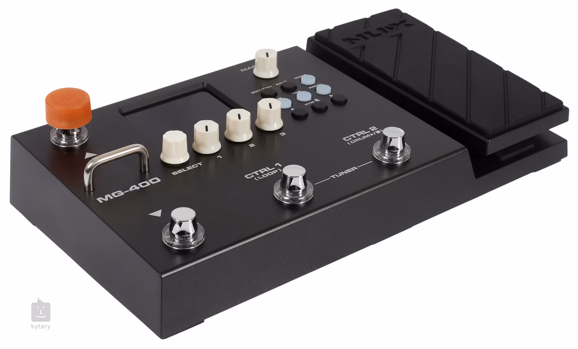 MG-400 je kompaktný gitarový multiefekt od spoločnosti NUX, ktorý je vybavený najnovšou technológiou modelovania (TS/AC-HD) na simuláciu odozvy klasických analógových gitár, kompletnou škálou efektov využívajúcich technológiu Core Image vrátane nových algoritmov, užívateľsky prívetivým rozhraním, editačným softvérom NUX QuickTone pre jednoduchú editáciu prednastavených parametrov a nahrávanie IR vo formáte a kvalite 48kHz wav, USB audio pre nahrávanie a re-amping, vstavanou sekciou pre sprievodné bicie, looperom, vstavanou ladičkou, expression pedálom a ďalšími užitočnými funkciami. To všetko za veľmi prijateľnú cenu.