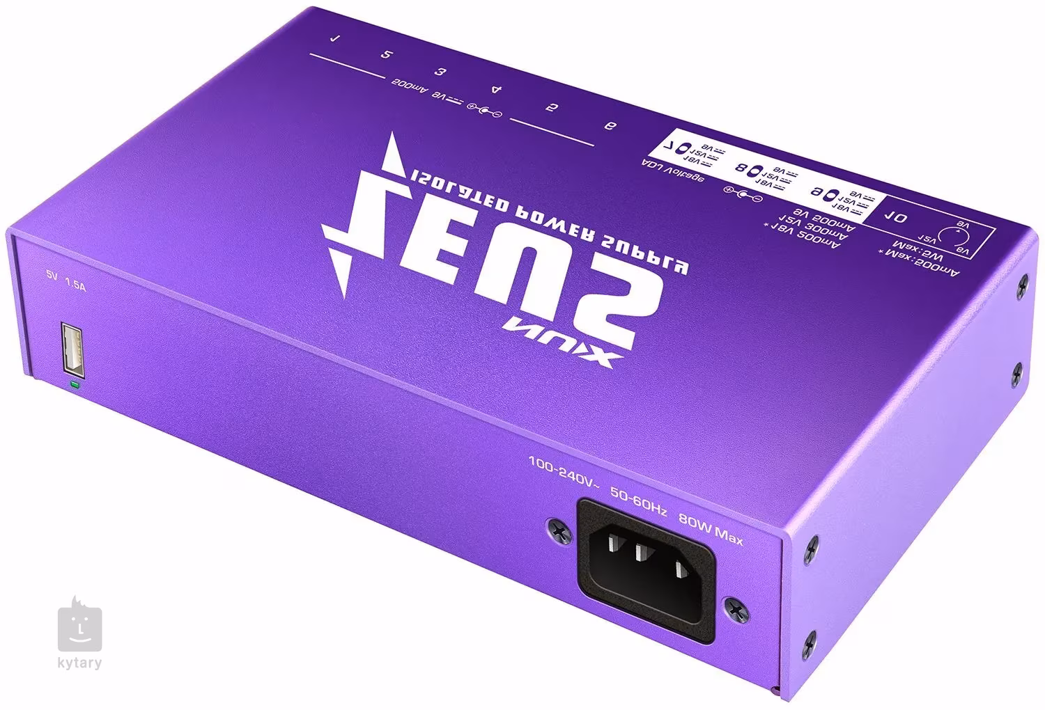 NIP-Z10 Zeus je precízne skonštruovaný multiadaptér od spoločnosti NUX, ktorý vám umožní napájať viacero efektov súčasne. Ponúka celkom 11 izolovaných výstupov - šesť štandardných 9V (500 mA), dva prepínateľné medzi 9V (500 mA), 12V (300 mA) a 18V (200 mA), jeden s plynulou reguláciou prúdu od 6 do 12V (max. 500 mA) a jeden 5V USB výstup na napájanie mobilného zariadenia. Vďaka integrovanému meniču vstupného napätia je Zeus kompatibilný so všetkými napájacími zdrojmi na celom svete. Takže sa môžete bez obáv vydať na cestu po celom svete.