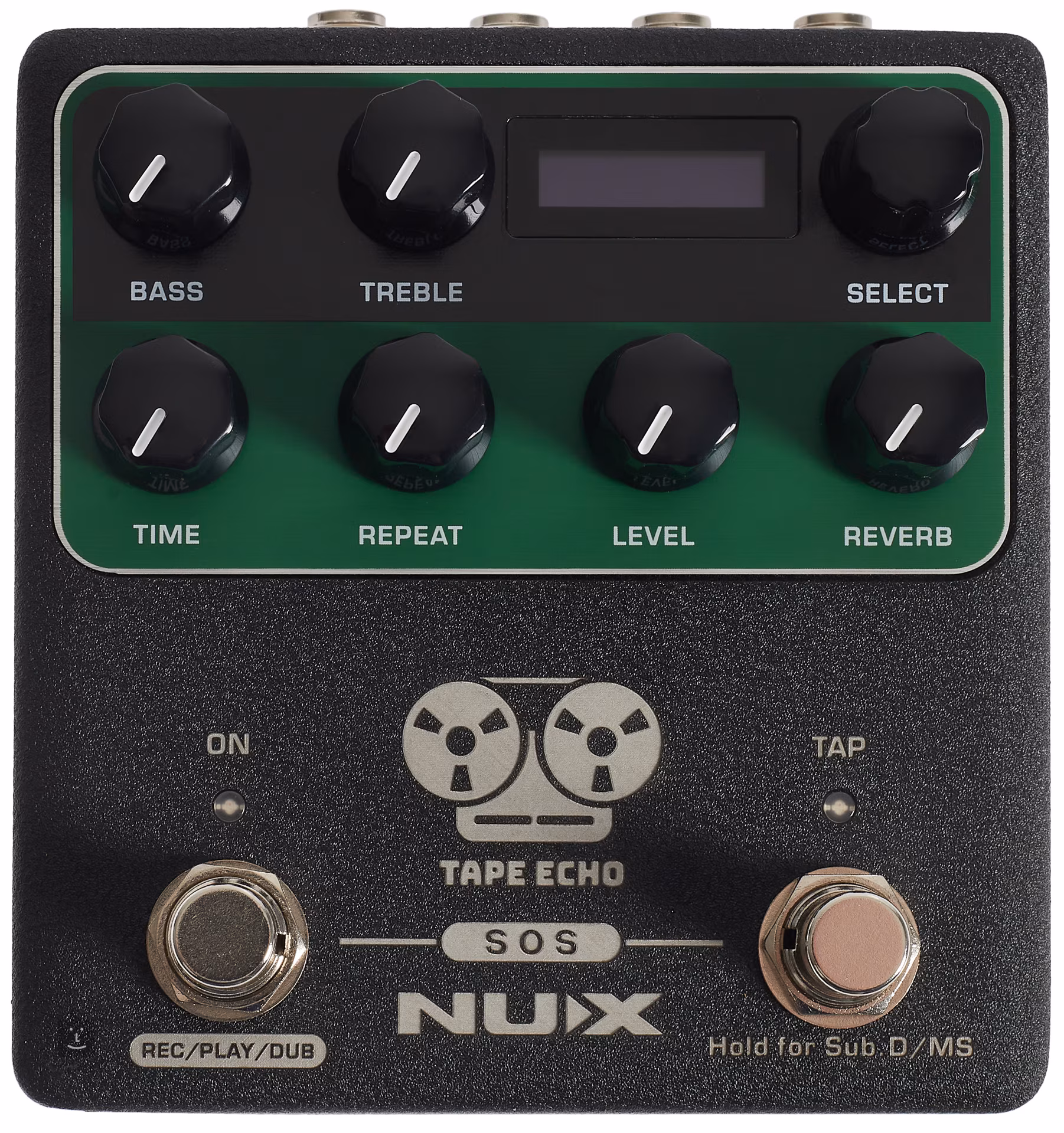 TAPE ECHO NDD-7 je stereo delay pedál NUX zo série Verdugo, ktorý poteší fanúšikov zvukovo komplexnejších pedálových efektov. V podstate ide o poctu starému japonskému páskovému echu Space Echo z roku 1974. TAPE ECHO NDD-7 ponúka kombináciu siedmich virtuálnych páskových hláv a reverbu (pružinového), ktoré znejú realisticky vďaka technológii Core-Image. Ovládacie prvky väčšinou určujú tvar páskového echa (basy, výšky, trvanie - s funkciou tap tempo až 1600 ms, počet opakovaní, intenzitu), ovládač Select volí medzi kombináciami virtuálnych páskových hláv, jeho stlačením sa dostanete k sekundárnym funkciám (Saturation, Wow, Flutter, Kill Dry, Expression). Krabička nezabúda ani na simuláciu opotrebovania pásky a ďalších drobných nedokonalostí, ktoré k páskovému echu patria.