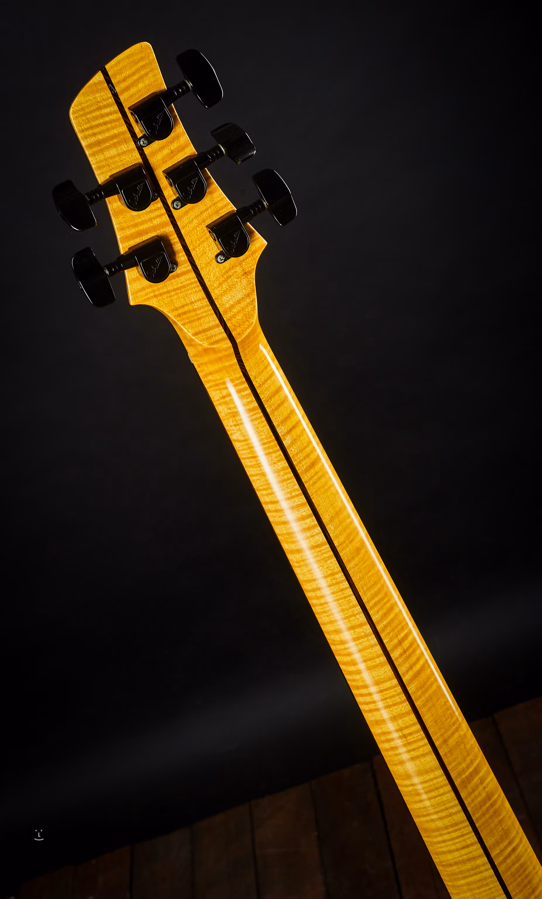 Top nástroje je z ručně profilovaného žíhaného javoru, zadní strana těla je jasanová. Krk je ze dvou kusů fládrovaného javoru, hmatník pau ferro. Povrch je lakován v šelaku!
