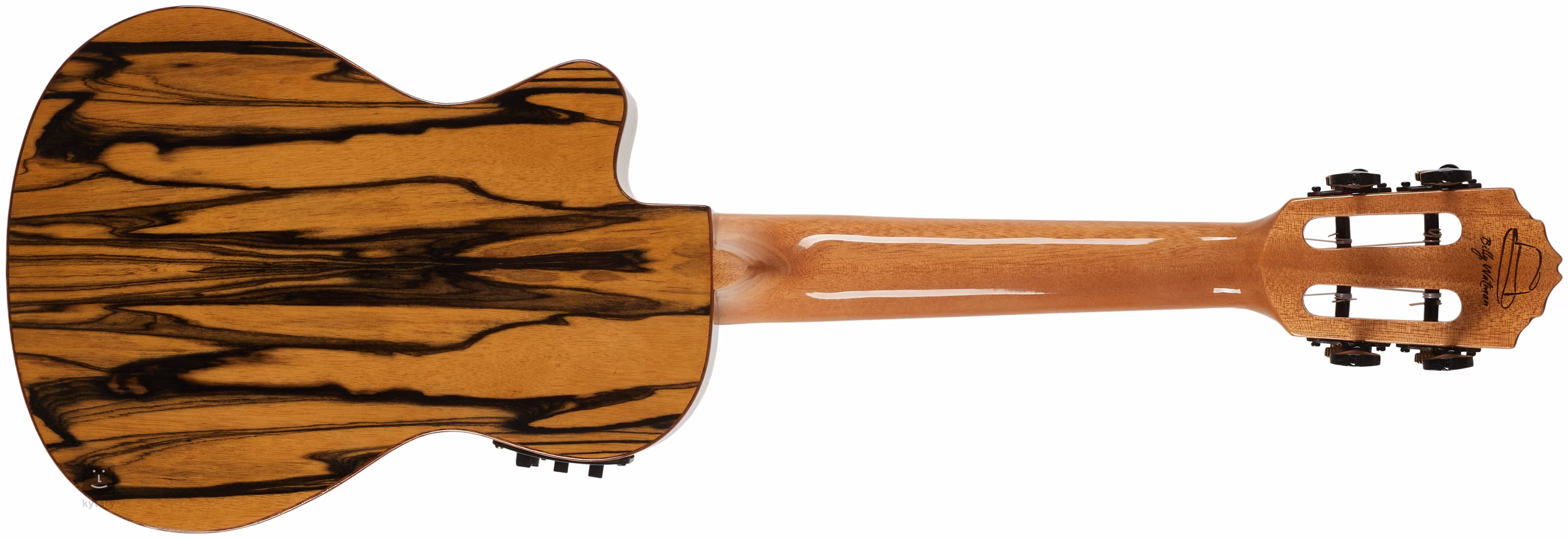 Vrchná doska ukulele je vyrobená z masívneho smreku, zatiaľ čo zadná doska a bočnice sú vyrobené z ručne vybraného vrstveného ebenu (Pale Moon Ebony). Exkluzívna kresba bieleho ebenu je zvýraznená vysokolesklým povrchom. Pohodlie pri hre zvyšuje ergonomická opierka ruky z čierneho orecha a výrez v spodnej časti tela.