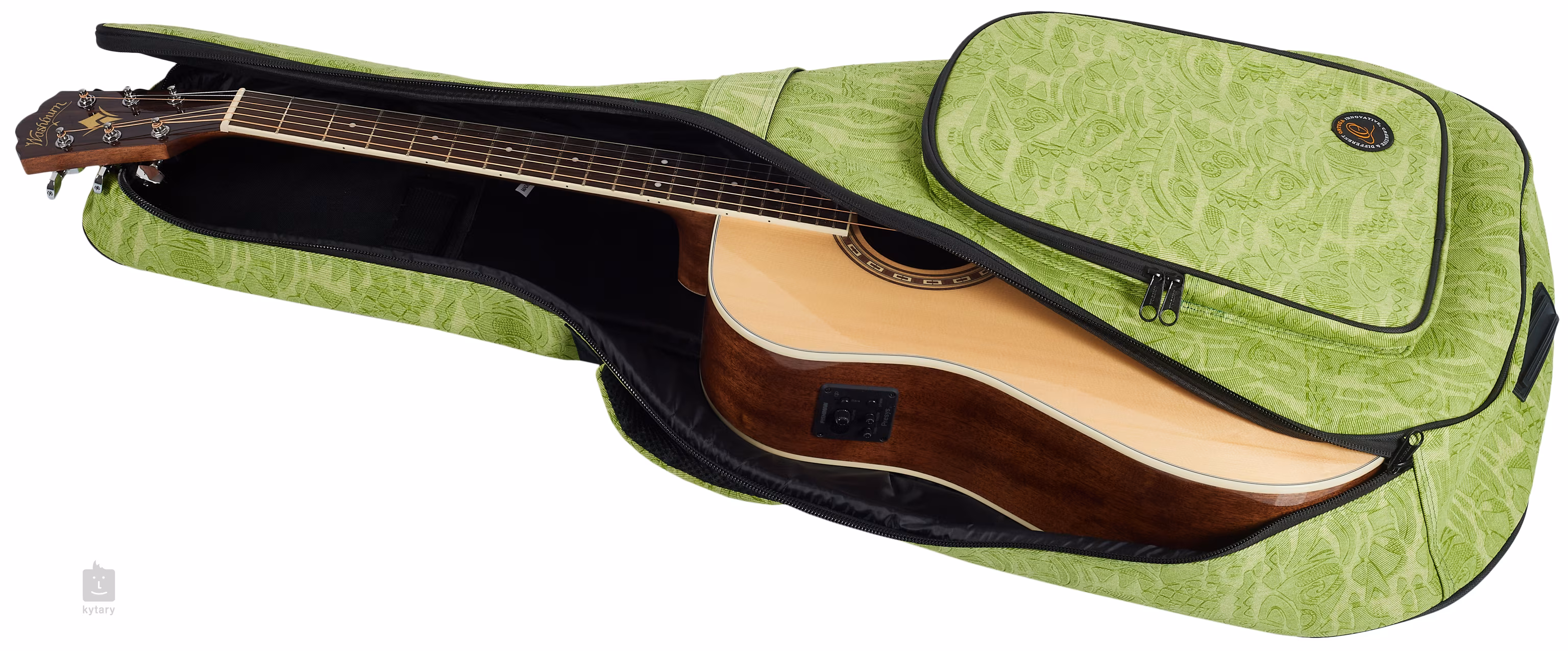 Nová séria džínsových puzdier Ortega na prvý pohľad zaujme použitým materiálom - kombinácia plátna a bavlny v džínsovej farbe nielen skvele vyzerá, ale je aj výnimočne odolná. Vo vnútri chráni váš nástroj 12 milimetrov hrubé polstrovanie a mäkká čierna nylonová podšívka a súčasťou je aj držiak na krk s bezpečnostnými suchými zipsami. Na vonkajšej strane puzdra sa nachádza veľké vrecko na uloženie príslušenstva, dvojica pohodlných nastaviteľných popruhov a spoľahlivý systém zipsov. Vďaka svojej veľkosti je obal ideálnou voľbou pre akustické gitary typu Dreadnought a podobne.