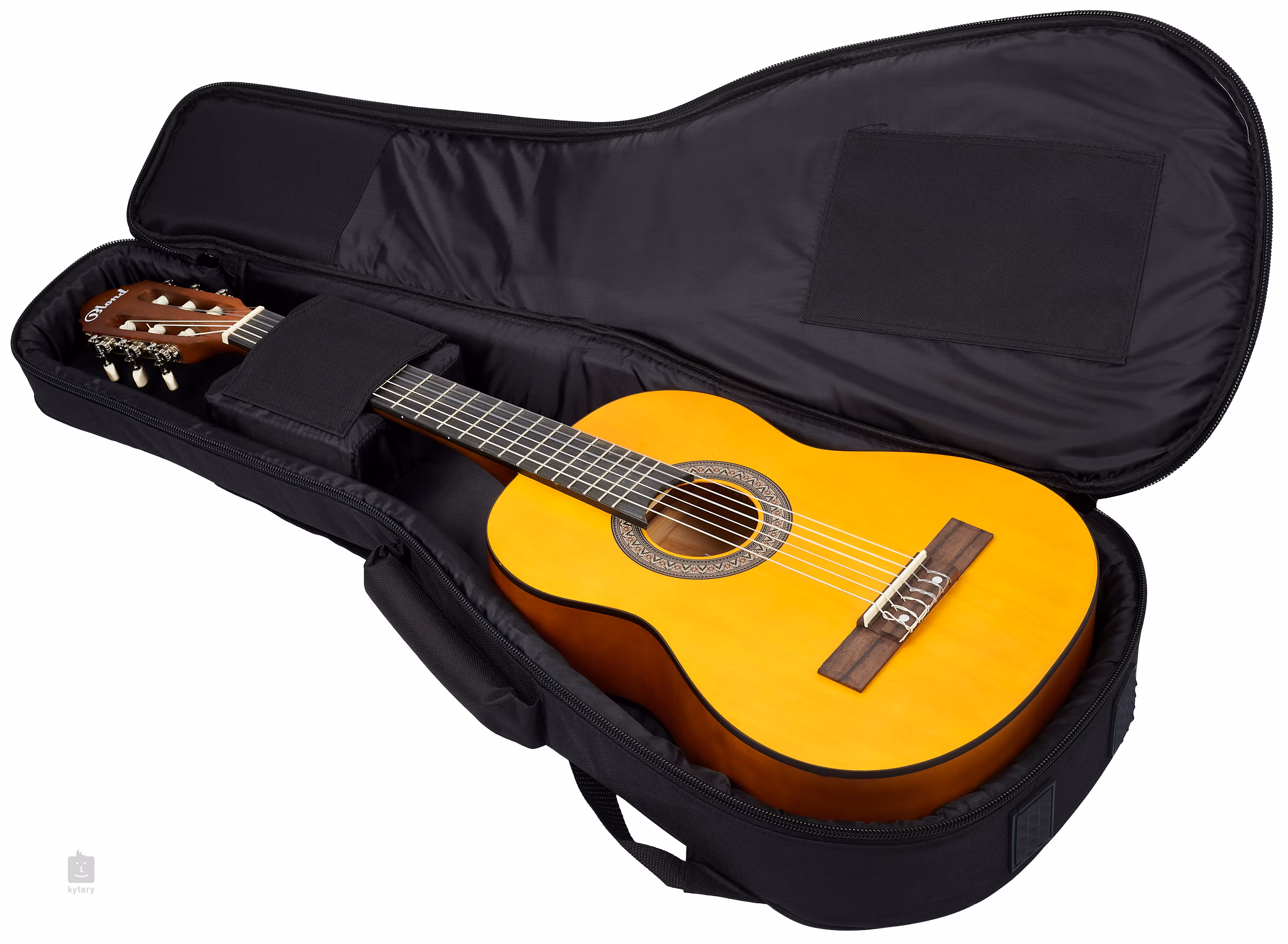 Taška na klasickú gitaru zo série Ortega Pro je vyrobená z odolného nylonu. Bohaté vnútorné polstrovanie a špeciálna výstuha na krk s bezpečnostným úchytom zabezpečujú dokonalú ochranu vášho nástroja. Puzdro je tiež vybavené spoľahlivým systémom zipsov, širokými a pohodlnými ramennými popruhmi s nastaviteľnou dĺžkou a polstrovanou rukoväťou na boku. Do dvoch veľkých vonkajších vreciek možno ľahko uložiť akékoľvek príslušenstvo vrátane notového materiálu. Gig bag je vhodný pre klasické gitary veľkosti 1/2.