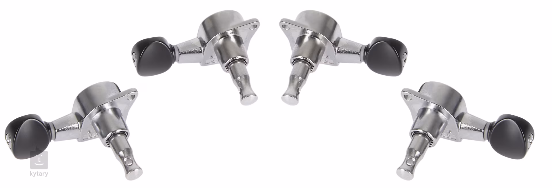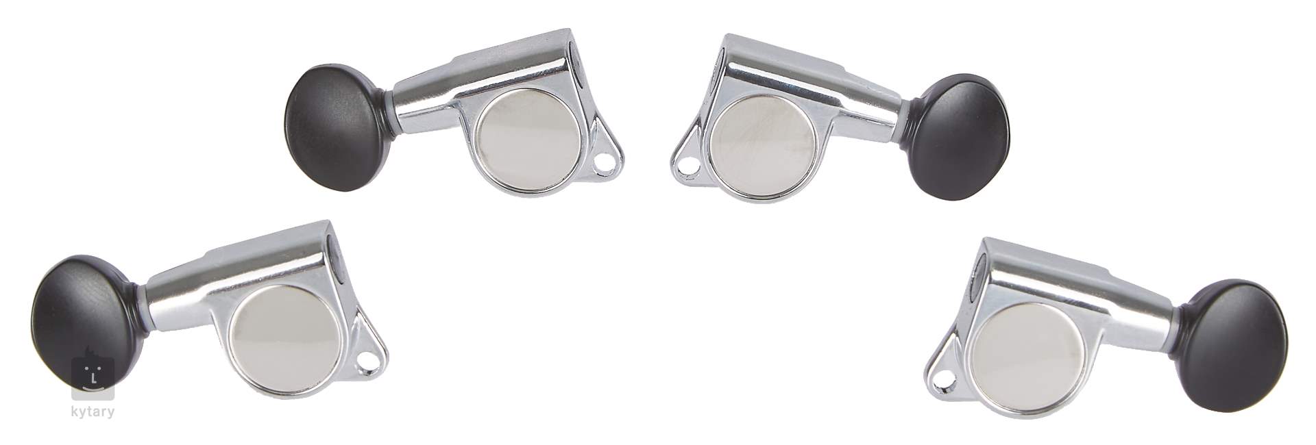 Odlievaná ladiaca mechanika pre ukulele. Sú vyrobené z liateho kovu s chrómovou povrchovou úpravou a kolíky z odolného čierneho plastu.