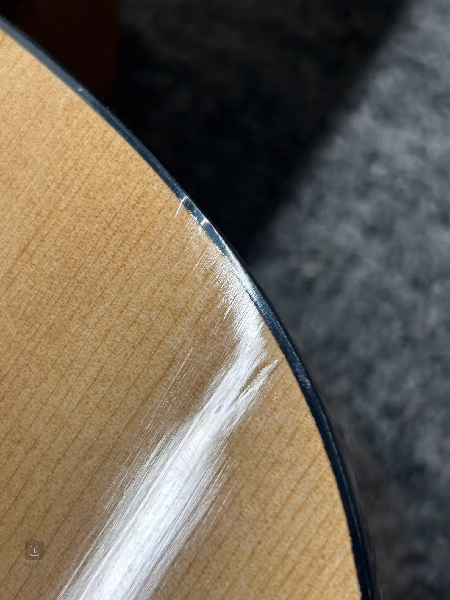 Povrchové vady továrenského laku na prednej doske (pozri fotografiu). Inak je nástroj v poriadku a plne funkčný.